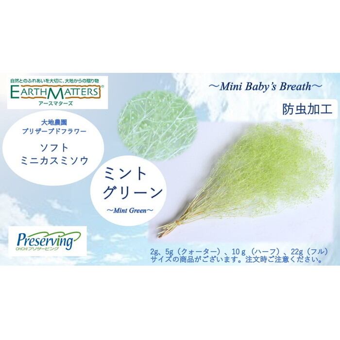 大地農園!プリザーブドフラワー 2g分【ソフトミニカスミ草 ミントグリーン】プリザ カスミソウ カスミ草 花材 ハーバリウム おしゃれ かわいい プレゼント 贈り物 オオチノウエン