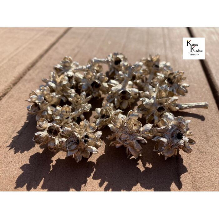 <p>ポップコーンのような形の小さく可愛らしい木の実です。華やかさを添える煌びやかでゴージャスなプラチナペイント。