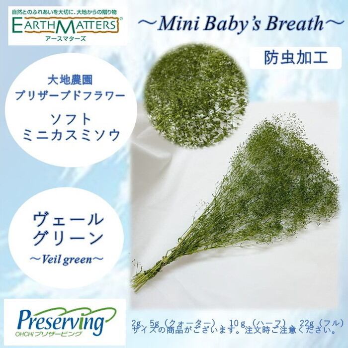 <h2>大地農園!プリザーブドフラワー 「22gソフトミニカスミ草 ヴェールグリーン」プリザ カスミソウ カスミ草 花材 ハーバリウム おしゃれ かわいい プレゼント 贈り物 オオチノウエン