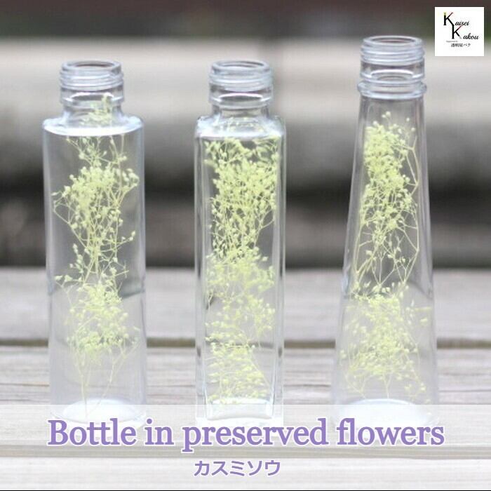 大地農園「ボトルインフラワー カスミソウ クリーム 1gずつ 円筒 円錐 スクエア150ml瓶3形状セット」プリザーブドフラワー プリザ ハーバリウム 小花 ドライフラワー ハーバリウム アロマワックスバー サシェ キャンドル 花材