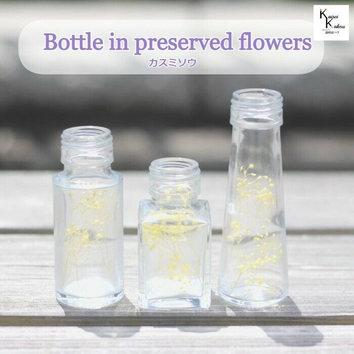 大地農園「ボトルインフラワー カスミソウ エンジェルイエロー 0.2gずつ 円筒 円錐 スクエア50ml瓶3形状セット」プリザーブドフラワー プリザ ハーバリウム 小花 ドライフラワー ハーバリウム アロマワックスバー サシェ キャンドル 花材