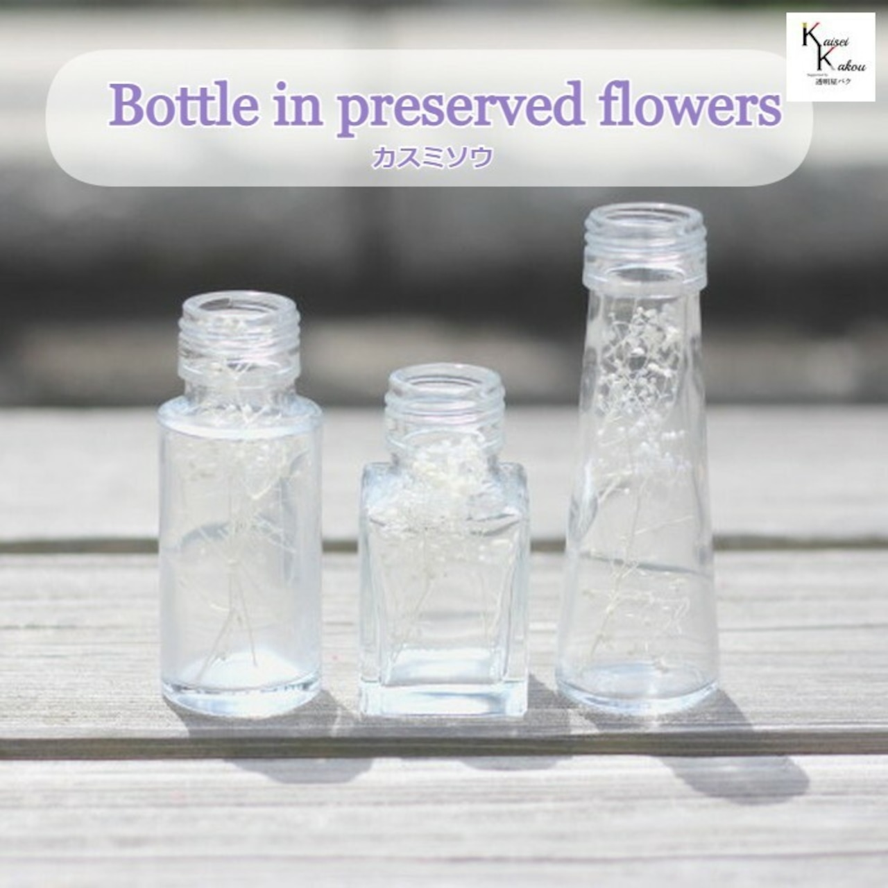 大地農園「ボトルインフラワー カスミソウ 白 0.2gずつ 円筒 円錐 スクエア50ml瓶3形状セット」プリザーブドフラワー プリザ ハーバリウム 小花 ドライフラワー ハーバリウム アロマワックスバー サシェ キャンドル 花材