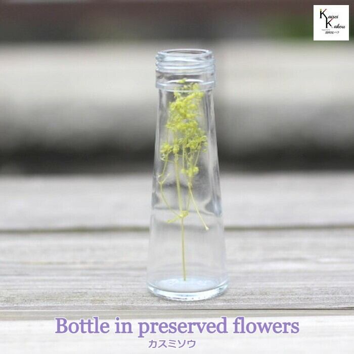 ・小ぶりな花が魅力のカスミ草をボトルの中に詰め込みました。