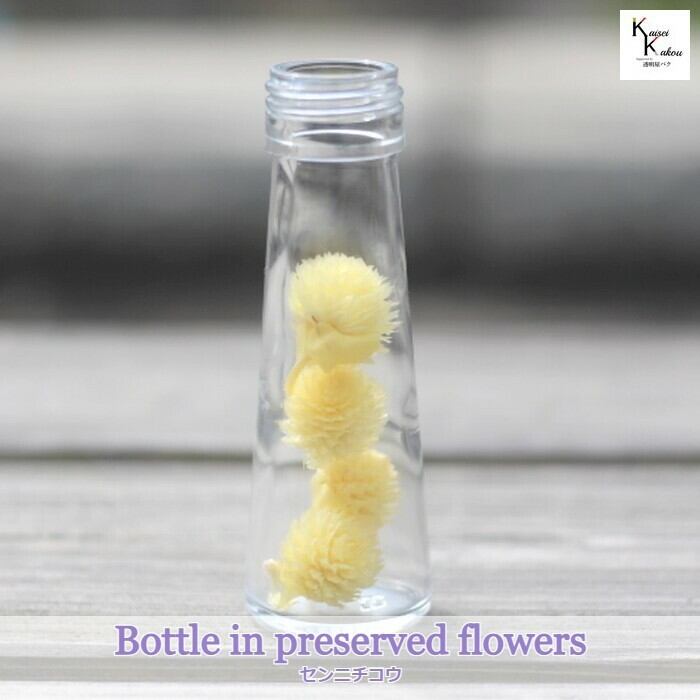 ・丸くて可愛い千日紅をボトルの中に詰め込みました。