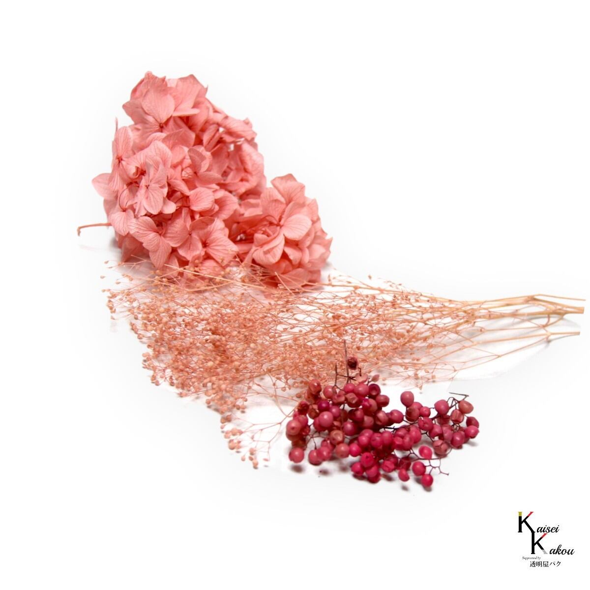 花材セット 「3種アソート ストロベリー」 アジサイ カスミ草 ペッパーベリー プリザ ハーバリウム 花材 髪飾り プリザーブドフラワー 小分け ネコポス ドライフラワー 手作り 花材セット 詰め合わせ ミックス あじさい 紫陽花 小さめ 小さい 小ぶり 可愛い かわいい