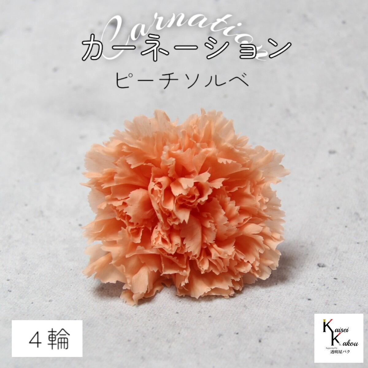 大地農園! プリザーブドフラワー 「カーネーション ピーチソルベ 4輪」プリザ ドライフラワー 花材 装飾 ハーバリウム 母の日 おしゃれ かわいい プレゼント 贈り物 オオチノウエン