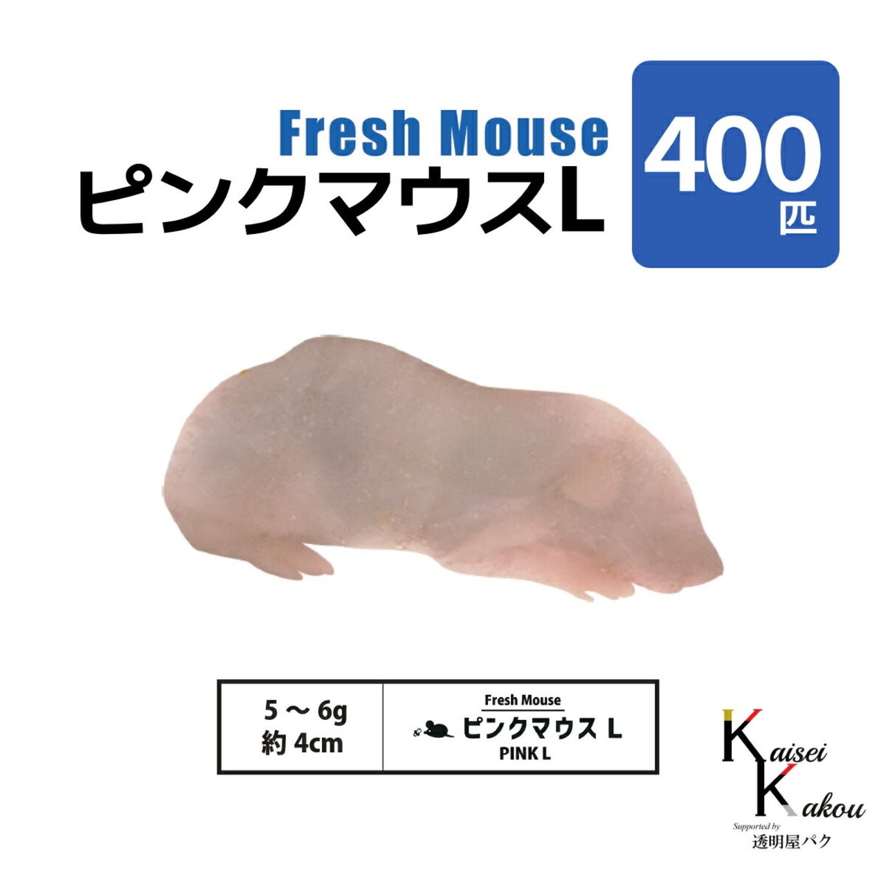 「ピンクマウスL 400匹(40袋) Biokimia 」 約4cm 5~6g 冷凍マウス 冷凍ラット フレッシュマウス フレッシュラット 冷凍餌
