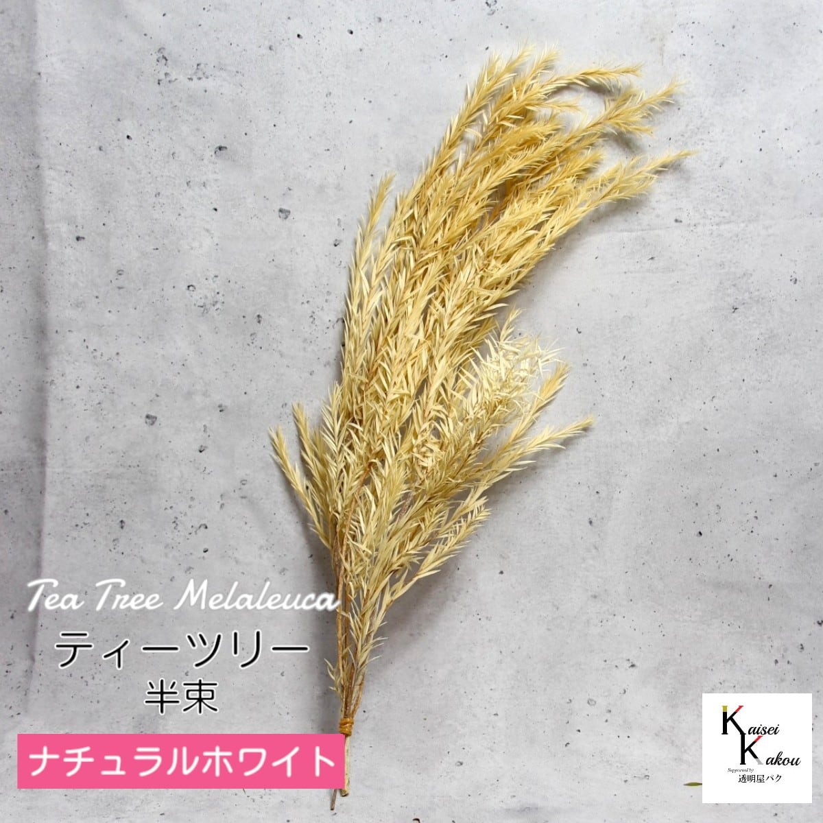 大地農園!プリザーブドフラワー 「ティーツリー(メラレウカ) ナチュラルホワイト 半束」プリザ 花材 ハーバリウム おしゃれ かわいい プレゼント 贈り物 オオチノウエン 自然からの贈り物。大地農園プリザーブドフラワー! シンプルだけど、存在感のあるティーツリー。花言葉は「強い味方」「清潔」です。フラワーアレンジメント、ハーバリウムに、インテリアとしてそのまま飾っていただくのもおすすめです。内容量:半束長さ:約45〜55cm取扱いの注意プリザーブドフラワーは湿気をとても嫌います。湿度の高い場所では枝や茎の切り口や表面から保存液や染料が染み出すことがあり、衣服などを汚す恐れがあります。ご使用の際には充分ご注意ください。※なるべくふんわりと梱包いたしますが、配送による破損、潰れ、ほころびなどが生じることがございます。ご心配な方は宅配便をご指定下さい。※配送の都合上、商品を箱に直接梱包することもございます。※高温多湿の場所では染料が切り口や表面からもれることがありますので、ご注意ください。※天然素材を使用している為、商品により色、サイズなど多少の違いが生じる場合がございます。※パッケージデザイン等が予告なく変更される場合もあります。※商品廃番・メーカー欠品など諸事情によりお届けできない場合がございます。※上記内容におけます返品交換は承れませんので、あらかじめご了承ください。 5