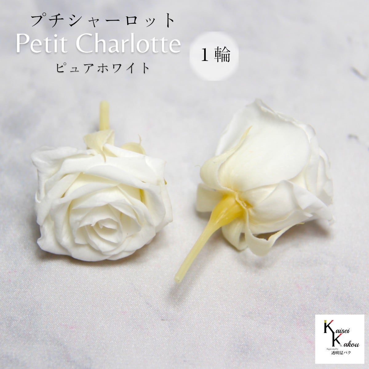 大地農園!プリザーブドフラワー 「プチシャーロット 1輪 ピュアホワイト」プリザ 花材 ハーバリウム おしゃれ かわいい プレゼント 贈り物 オオチノウエン 自然からの贈り物。大地農園プリザーブドフラワー! 花径:2.5~3.3cmφ花丈:約2cm小ぶりで可愛らしいプチシャーロット。薔薇の花言葉は「美」「愛」。 誕生日など特別な日のお祝いや、いい夫婦の日など、大切な人に贈り物をする際によく選ばれています。リース、アレンジ、ワックスサシェや髪飾りなどに...便利に使えます。02591-331 クイーンレッド02591-321 レッド02591-211 フランボワーズ02591-181 プリンセスピンク02591-133 バニラピンク02591-001 ピュアホワイト02591-011 アンティックホワイト02591-021 ホワイトシャンパン02591-101 ブライダルピンク02591-102 シャーベットピンク02591-451 スウィートライラック02591-361 ジュリアオレンジ02591-501 モーニングイエロー02591-521 ミモザイエロー02591-351 フルーティーオレンジ02591-521 フレッシュグリーン02591-351 ベビーブルー取扱いの注意プリザーブドフラワーは湿気をとても嫌います。湿度の高い場所では枝や茎の切り口や表面から保存液や染料が染み出すことがあり、衣服などを汚す恐れがあります。ご使用の際には充分ご注意ください。※なるべくふんわりと梱包いたしますが、配送による破損、潰れ、ほころびなどが生じることがございます。ご心配な方は宅配便をご指定下さい。※配送の都合上、商品を箱に直接梱包することもございます。※配送の都合上、使えない根元の部分はカットする場合があります。重量はカット前の重量となります。※高温多湿の場所では染料が切り口や表面からもれることがありますので、ご注意ください。※天然素材を使用している為、商品により色、サイズなど多少の違いが生じる場合がございます。※パッケージデザイン等が予告なく変更される場合もあります。※商品廃番・メーカー欠品など諸事情によりお届けできない場合がございます。※上記内容におけます返品交換は承れませんので、あらかじめご了承ください。 5