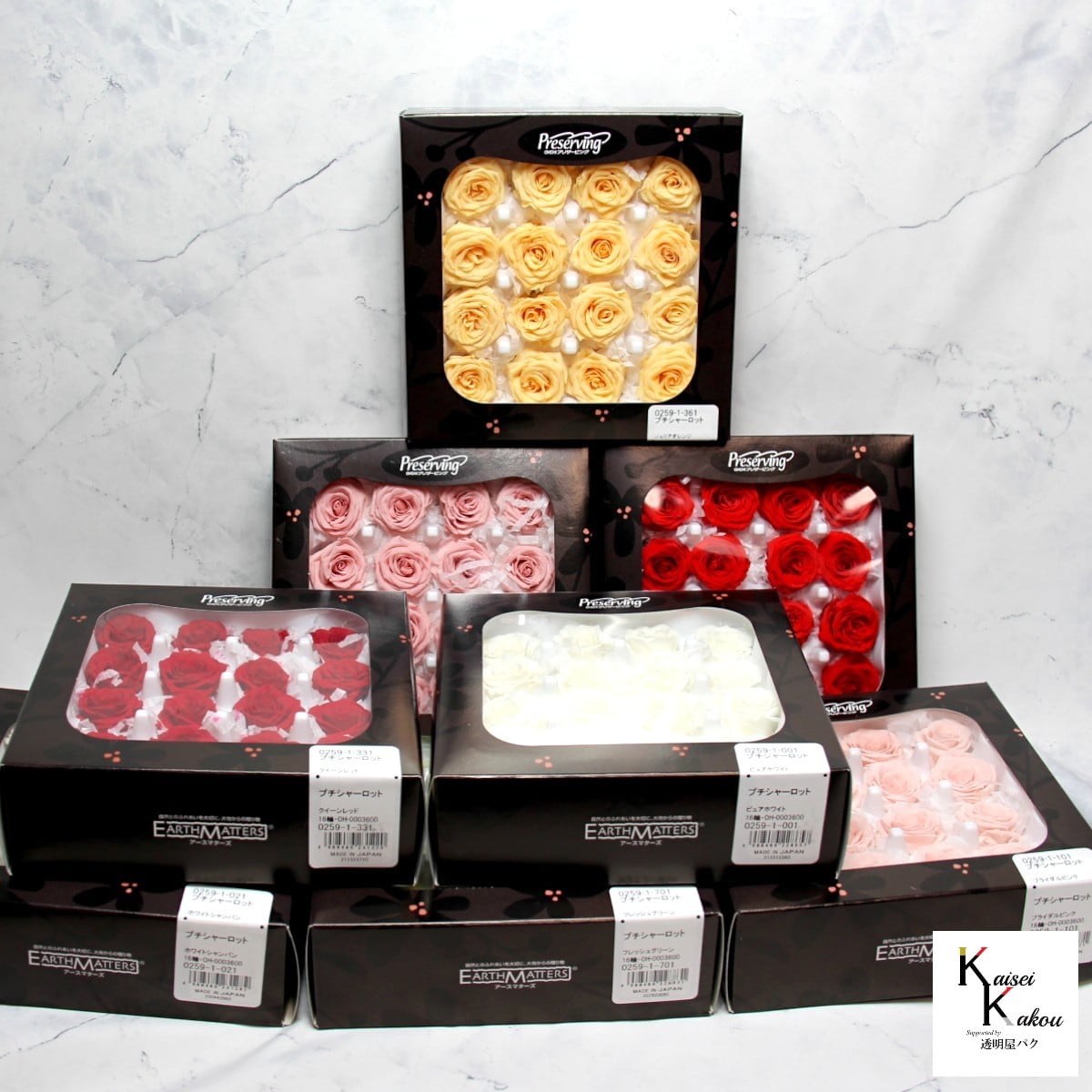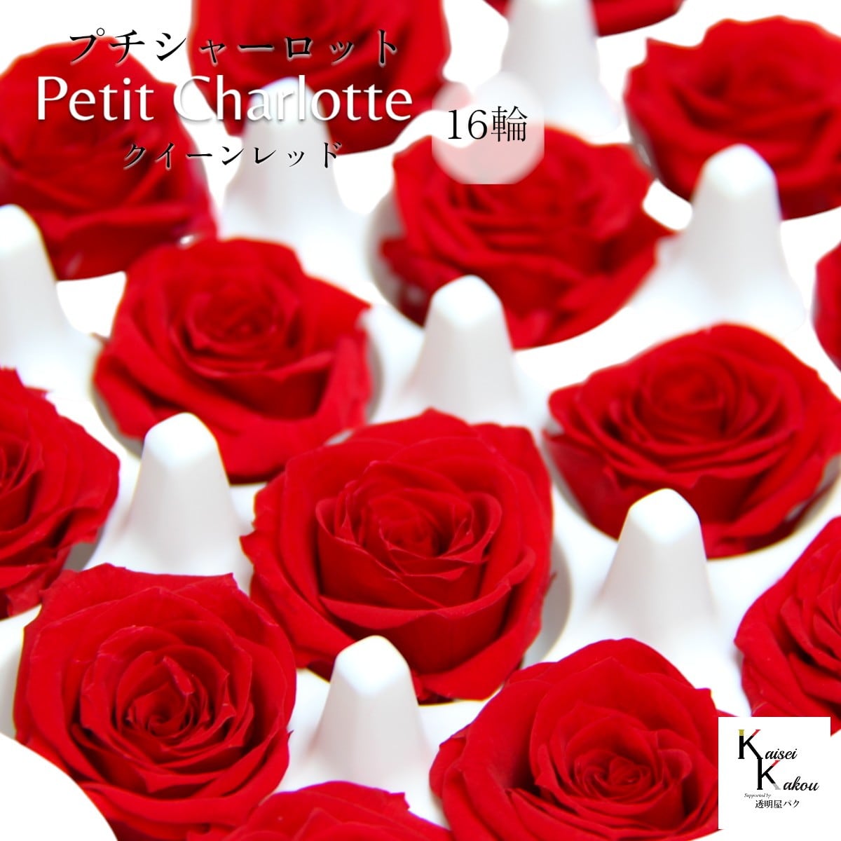 大地農園!プリザーブドフラワー 「プチシャーロット 16輪 クイーンレッド」プリザ 花材 ハーバリウム おしゃれ かわいい プレゼント 贈り物 オオチノウエン 自然からの贈り物。大地農園プリザーブドフラワー! 花径:2.5~3.3cmφ花丈:約2cm小ぶりで可愛らしいプチシャーロット。薔薇の花言葉は「美」「愛」。 誕生日など特別な日のお祝いや、いい夫婦の日など、大切な人に贈り物をする際によく選ばれています。リース、アレンジ、ワックスサシェや髪飾りなどに...便利に使えます。02591-331 クイーンレッド02591-321 レッド02591-211 フランボワーズ02591-181 プリンセスピンク02591-133 バニラピンク02591-001 ピュアホワイト02591-011 アンティックホワイト02591-021 ホワイトシャンパン02591-101 ブライダルピンク02591-102 シャーベットピンク02591-451 スウィートライラック02591-361 ジュリアオレンジ02591-501 モーニングイエロー02591-521 ミモザイエロー02591-351 フルーティーオレンジ02591-521 フレッシュグリーン02591-351 ベビーブルー取扱いの注意プリザーブドフラワーは湿気をとても嫌います。湿度の高い場所では枝や茎の切り口や表面から保存液や染料が染み出すことがあり、衣服などを汚す恐れがあります。ご使用の際には充分ご注意ください。※なるべくふんわりと梱包いたしますが、配送による破損、潰れ、ほころびなどが生じることがございます。ご心配な方は宅配便をご指定下さい。※配送の都合上、商品を箱に直接梱包することもございます。※配送の都合上、使えない根元の部分はカットする場合があります。重量はカット前の重量となります。※高温多湿の場所では染料が切り口や表面からもれることがありますので、ご注意ください。※天然素材を使用している為、商品により色、サイズなど多少の違いが生じる場合がございます。※パッケージデザイン等が予告なく変更される場合もあります。※商品廃番・メーカー欠品など諸事情によりお届けできない場合がございます。※上記内容におけます返品交換は承れませんので、あらかじめご了承ください。 5