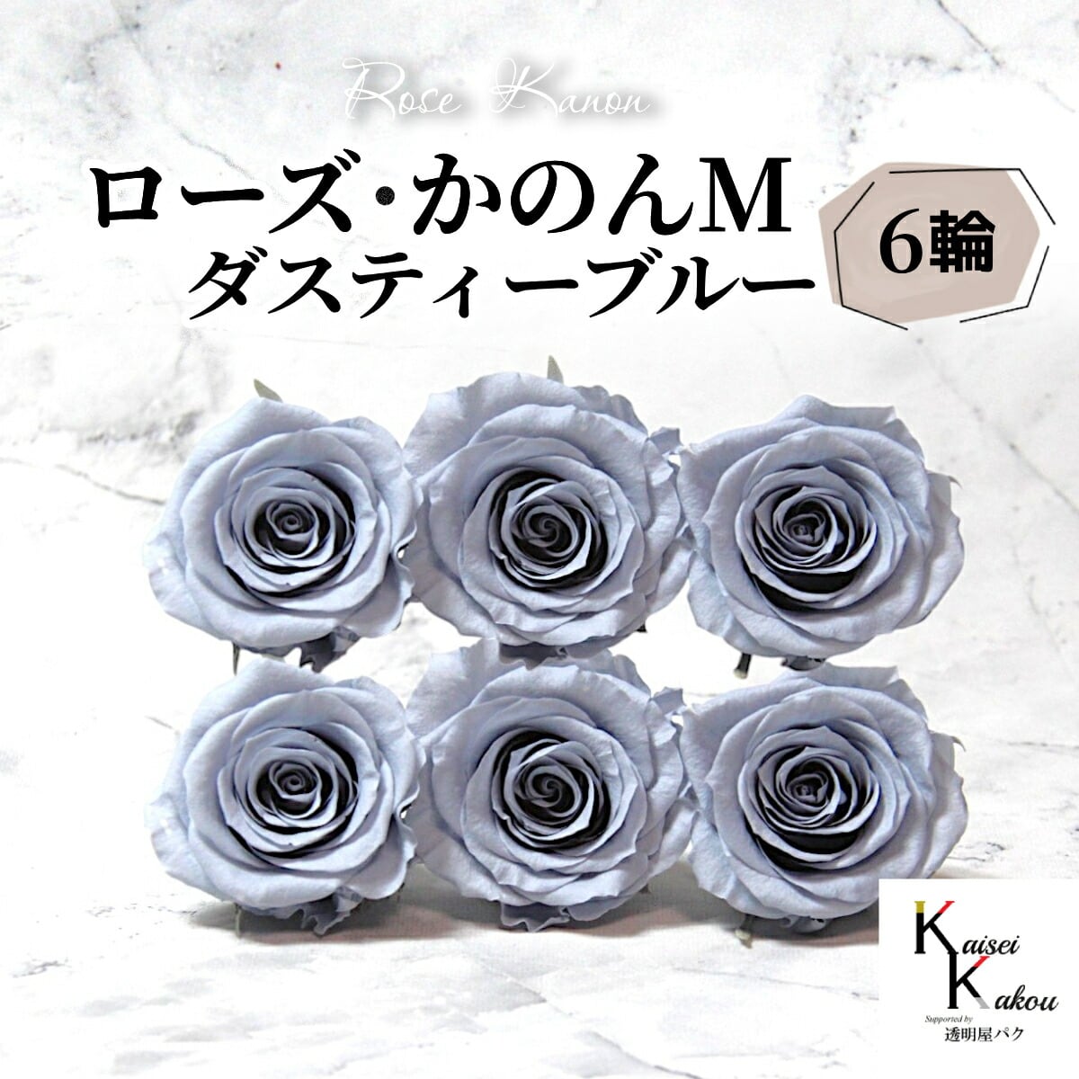 大地農園 「ローズかのんM ダスティーブルー 6輪」 プリザーブドフラワー バラ プリザ 花材 ハーバリウム おしゃれ かわいい プレゼント 贈り物 オオチノウエン 自然からの贈り物。大地農園プリザーブドフラワー! ●ローズかのんM直径 約4~5cm高さ 約3.5~4cmオーソドックスで使いやすくしっかりとした花型のローズ。花の女王と呼ばれる華やかなローズはフラワーアレンジメント、ハーバリウムに、おすすめです。●取扱いの注意プリザーブドフラワーは湿気をとても嫌います。湿度の高い場所では枝や茎の切り口や表面から保存液や染料が染み出すことがあり、衣服などを汚す恐れがあります。ご使用の際には充分ご注意ください。※なるべくふんわりと梱包いたしますが、配送による破損、潰れ、ほころびなどが生じることがございます。ご心配な方は宅配便をご指定下さい。※配送の都合上、商品を箱に直接梱包することもございます。※高温多湿の場所では染料が切り口や表面からもれることがありますので、ご注意ください。※天然素材を使用している為、商品により色、サイズなど多少の違いが生じる場合がございます。※パッケージデザイン等が予告なく変更される場合もあります。※商品廃番・メーカー欠品など諸事情によりお届けできない場合がございます。※上記内容におけます返品交換は承れませんので、あらかじめご了承ください。 5