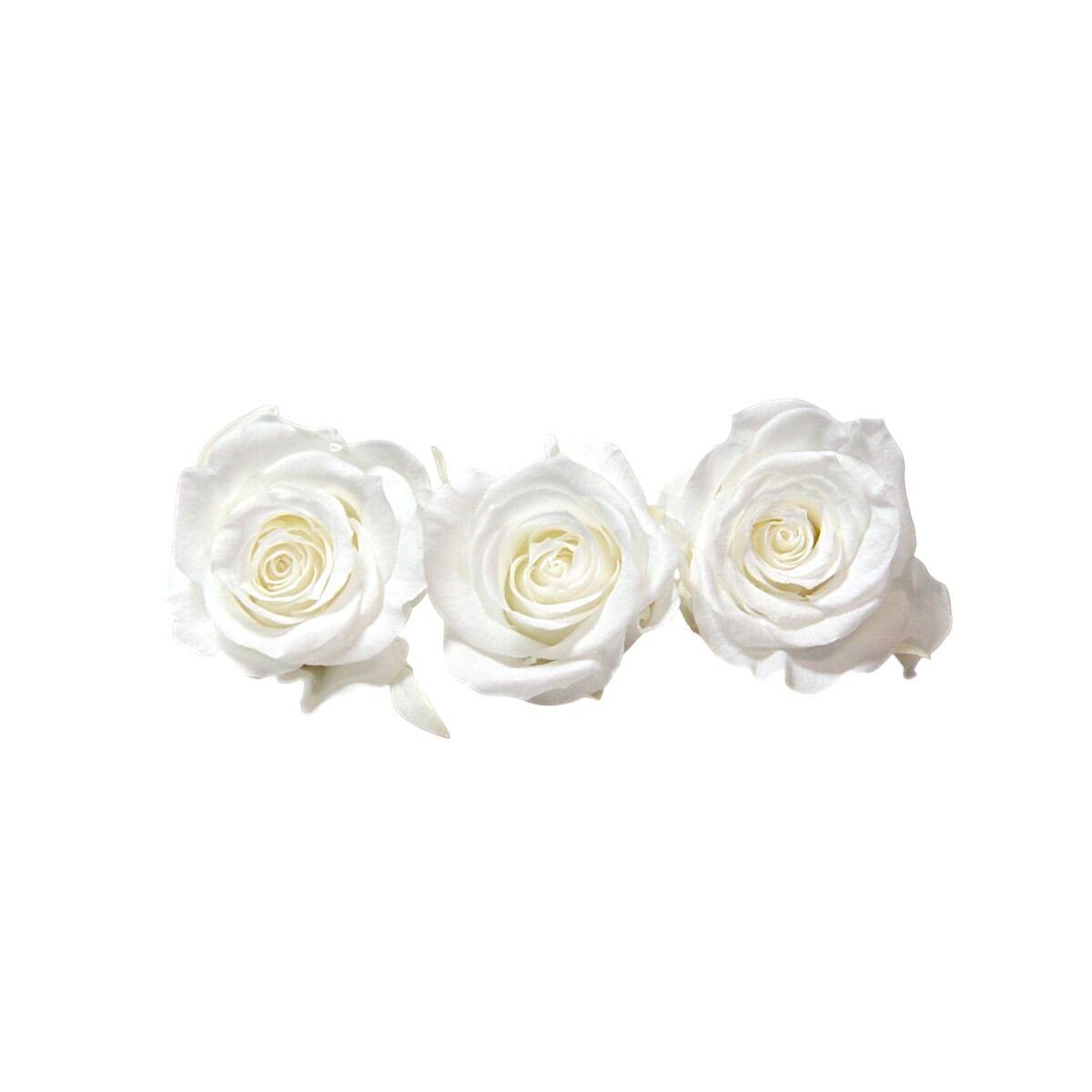 大地農園 「ローズかのんM ピュアホワイト 3輪」 プリザーブドフラワー バラ プリザ 花材 ハーバリウム おしゃれ かわいい プレゼント 贈り物 オオチノウエン 自然からの贈り物。大地農園プリザーブドフラワー! ●ローズかのんM直径 約4~5cm高さ 約3.5~4cmオーソドックスで使いやすくしっかりとした花型のローズ。花の女王と呼ばれる華やかなローズはフラワーアレンジメント、ハーバリウムに、おすすめです。●取扱いの注意プリザーブドフラワーは湿気をとても嫌います。湿度の高い場所では枝や茎の切り口や表面から保存液や染料が染み出すことがあり、衣服などを汚す恐れがあります。ご使用の際には充分ご注意ください。※なるべくふんわりと梱包いたしますが、配送による破損、潰れ、ほころびなどが生じることがございます。ご心配な方は宅配便をご指定下さい。※配送の都合上、商品を箱に直接梱包することもございます。※高温多湿の場所では染料が切り口や表面からもれることがありますので、ご注意ください。※天然素材を使用している為、商品により色、サイズなど多少の違いが生じる場合がございます。※パッケージデザイン等が予告なく変更される場合もあります。※商品廃番・メーカー欠品など諸事情によりお届けできない場合がございます。※上記内容におけます返品交換は承れませんので、あらかじめご了承ください。 5