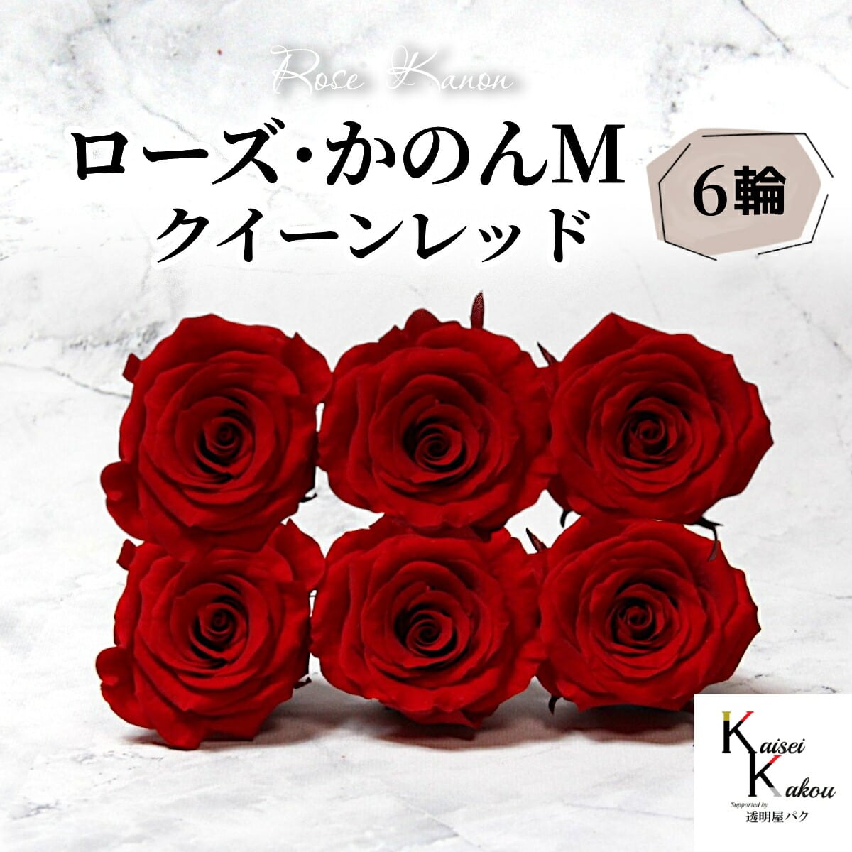 大地農園 「ローズかのんM クイーンレッド 6輪」 プリザーブドフラワー バラ プリザ 花材 ハーバリウム おしゃれ かわいい プレゼント 贈り物 オオチノウエン 自然からの贈り物。大地農園プリザーブドフラワー! ●ローズかのんM直径 約4~5cm高さ 約3.5~4cmオーソドックスで使いやすくしっかりとした花型のローズ。花の女王と呼ばれる華やかなローズはフラワーアレンジメント、ハーバリウムに、おすすめです。●取扱いの注意プリザーブドフラワーは湿気をとても嫌います。湿度の高い場所では枝や茎の切り口や表面から保存液や染料が染み出すことがあり、衣服などを汚す恐れがあります。ご使用の際には充分ご注意ください。※なるべくふんわりと梱包いたしますが、配送による破損、潰れ、ほころびなどが生じることがございます。ご心配な方は宅配便をご指定下さい。※配送の都合上、商品を箱に直接梱包することもございます。※高温多湿の場所では染料が切り口や表面からもれることがありますので、ご注意ください。※天然素材を使用している為、商品により色、サイズなど多少の違いが生じる場合がございます。※パッケージデザイン等が予告なく変更される場合もあります。※商品廃番・メーカー欠品など諸事情によりお届けできない場合がございます。※上記内容におけます返品交換は承れませんので、あらかじめご了承ください。 5