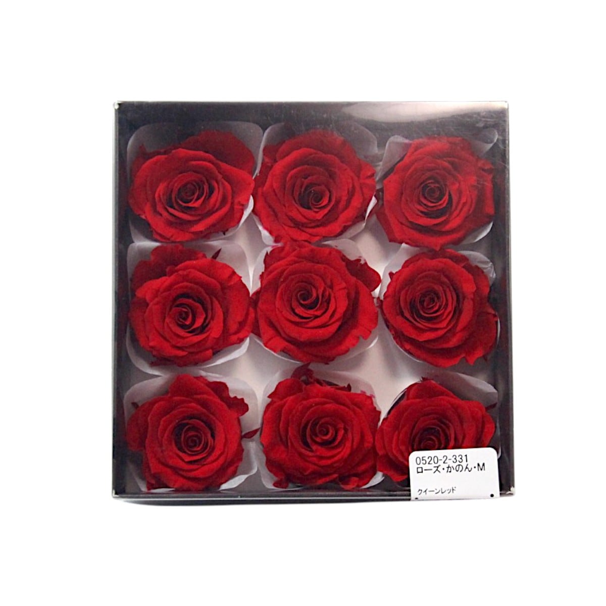 大地農園 「ローズかのんM クイーンレッド 9輪」 プリザーブドフラワー バラ プリザ 花材 ハーバリウム おしゃれ かわいい プレゼント 贈り物 オオチノウエン 自然からの贈り物。大地農園プリザーブドフラワー! ●ローズかのんM直径 約4~5cm高さ 約3.5~4cmオーソドックスで使いやすくしっかりとした花型のローズ。花の女王と呼ばれる華やかなローズはフラワーアレンジメント、ハーバリウムに、おすすめです。●取扱いの注意プリザーブドフラワーは湿気をとても嫌います。湿度の高い場所では枝や茎の切り口や表面から保存液や染料が染み出すことがあり、衣服などを汚す恐れがあります。ご使用の際には充分ご注意ください。※なるべくふんわりと梱包いたしますが、配送による破損、潰れ、ほころびなどが生じることがございます。ご心配な方は宅配便をご指定下さい。※配送の都合上、商品を箱に直接梱包することもございます。※高温多湿の場所では染料が切り口や表面からもれることがありますので、ご注意ください。※天然素材を使用している為、商品により色、サイズなど多少の違いが生じる場合がございます。※パッケージデザイン等が予告なく変更される場合もあります。※商品廃番・メーカー欠品など諸事情によりお届けできない場合がございます。※上記内容におけます返品交換は承れませんので、あらかじめご了承ください。 5