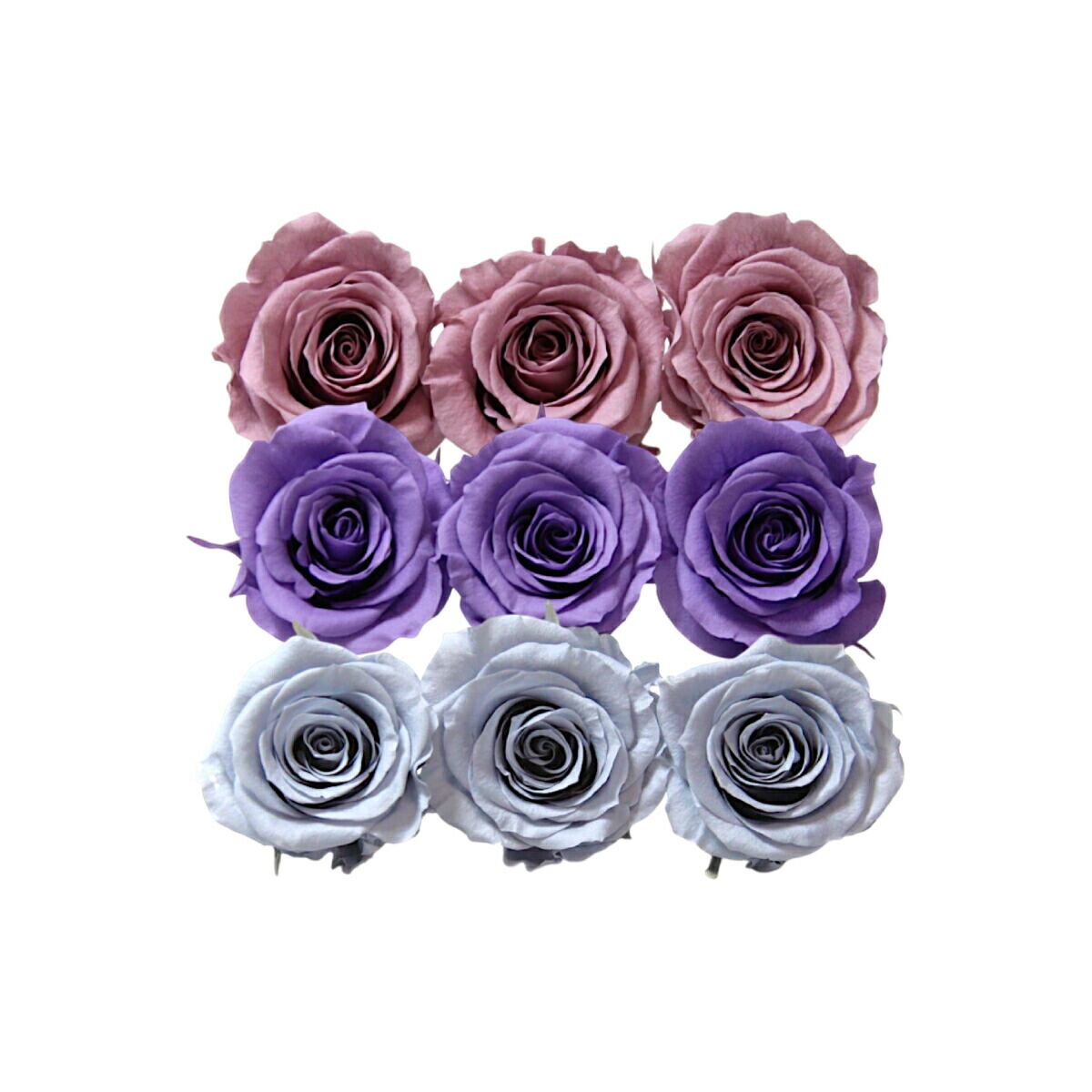 大地農園 「ローズかのんM 3色×3輪アソート 計9輪」 「グレイッシュパープル ラベンダー ダスティーブルー」 プリザーブドフラワー バラ プリザ 花材 ハーバリウム おしゃれ かわいい プレゼント 贈り物 オオチノウエン