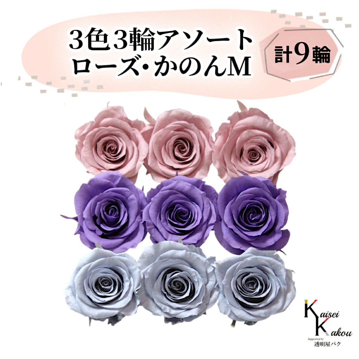 大地農園 「ローズかのんM 3色×3輪アソート 計9輪」 「ミスティローズ ラベンダー ダスティーブルー」 プリザーブドフラワー バラ プリザ 花材 ハーバリウム おしゃれ かわいい プレゼント 贈り物 オオチノウエン