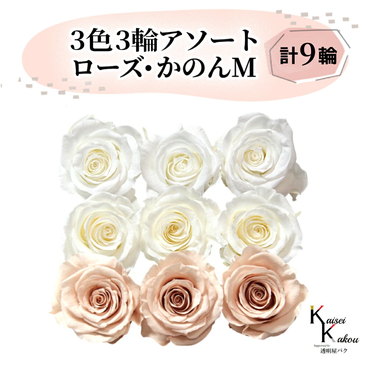 大地農園 「ローズかのんM 3色×3輪アソート 計9輪」 「ピュアホワイト アンティックホワイト シャンパンピンク」 プリザーブドフラワー バラ プリザ 花材 ハーバリウム おしゃれ かわいい プレゼント 贈り物 オオチノウエン