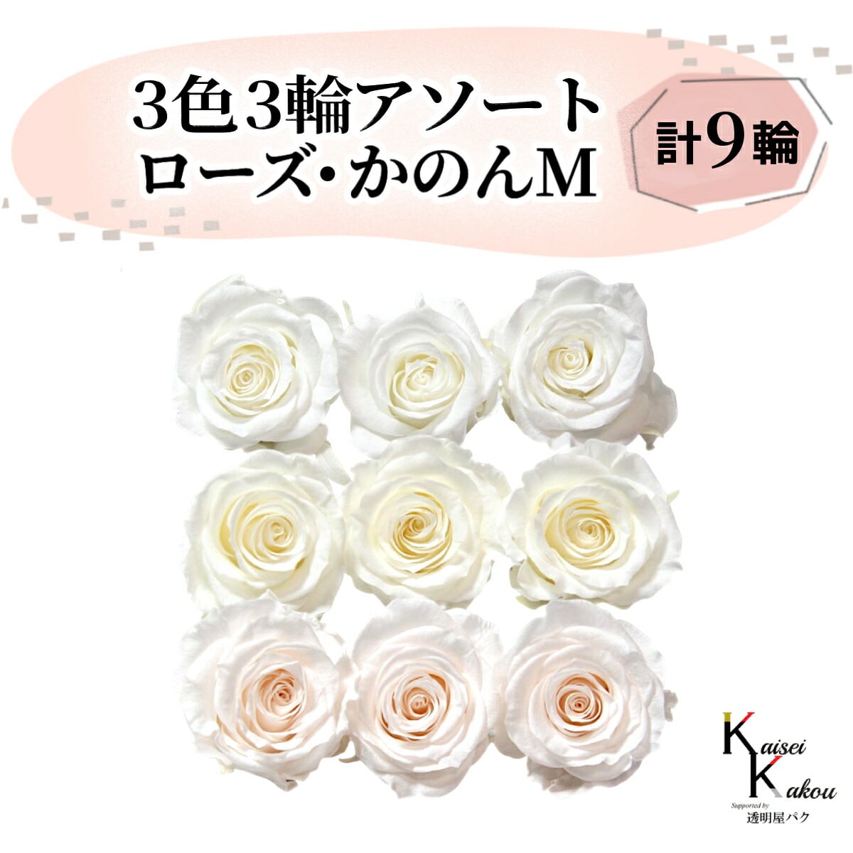 大地農園 「ローズかのんM 3色×3輪アソート 計9輪」 「ピュアホワイト アンティックホワイト ホワイトシャンパン」 プリザーブドフラワー バラ プリザ 花材 ハーバリウム おしゃれ かわいい プレゼント 贈り物 オオチノウエン