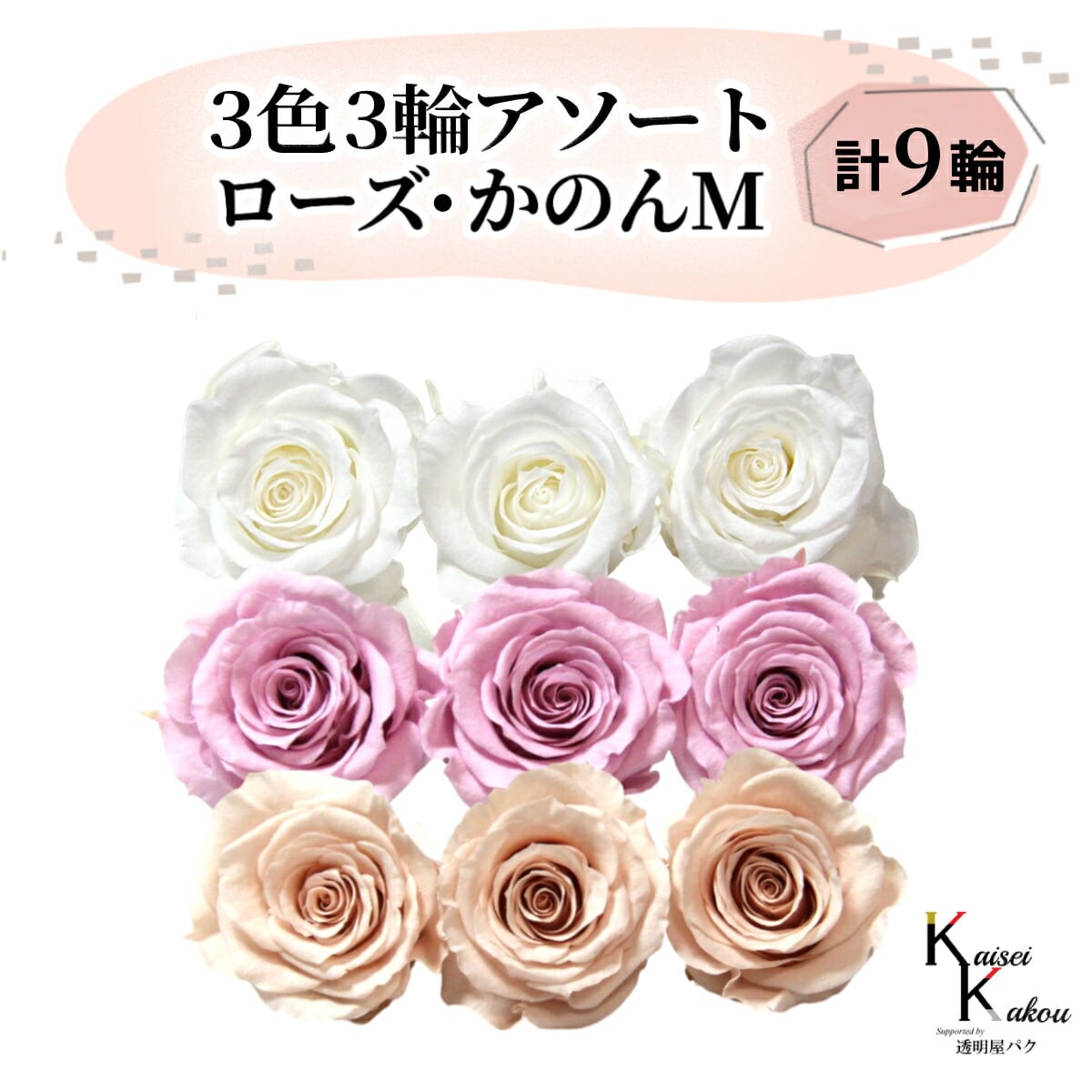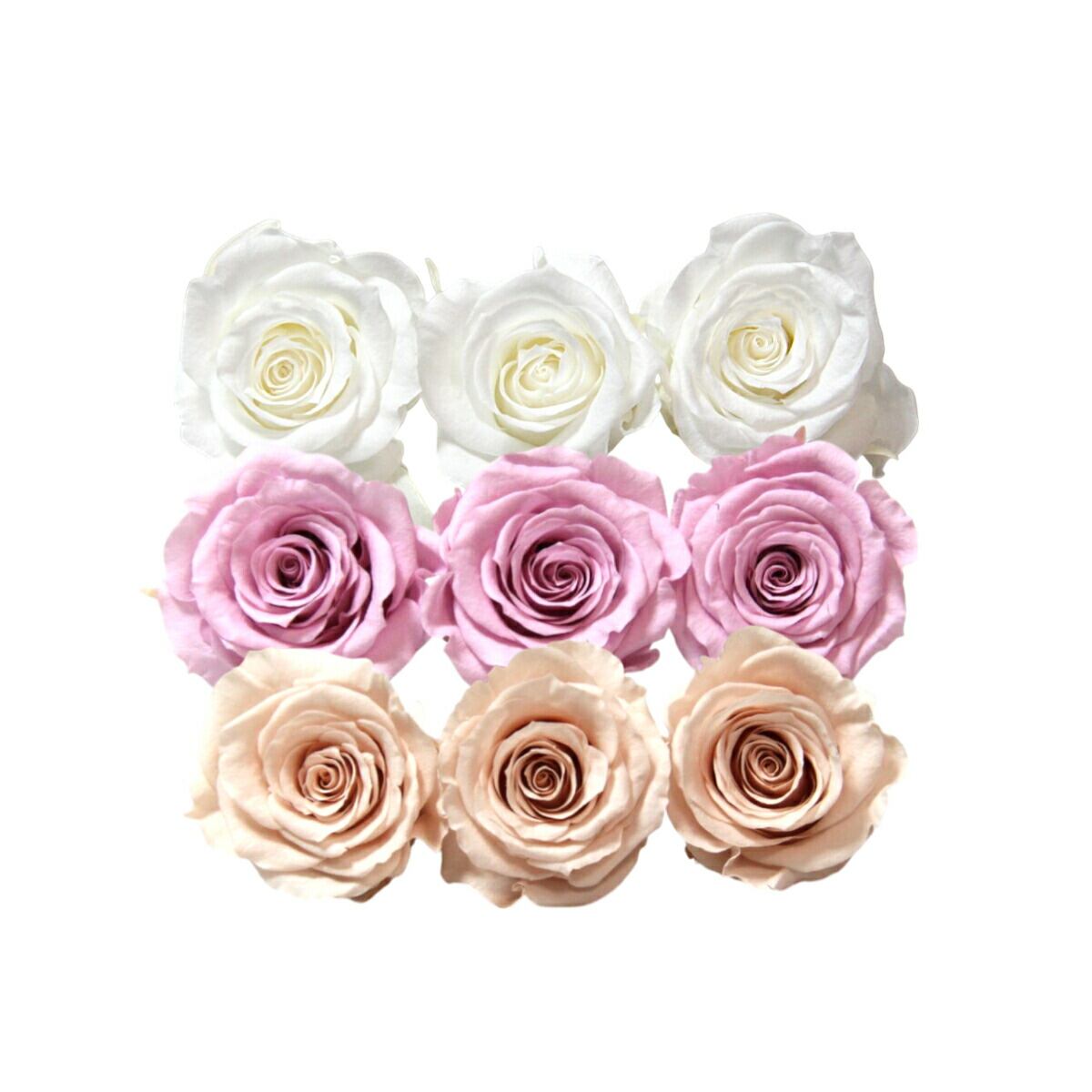 大地農園 「ローズかのんM 3色×3輪アソート 計9輪」 「ピュアホワイト クリスタルピンク シャンパンピンク」 プリザーブドフラワー バラ プリザ 花材 ハーバリウム おしゃれ かわいい プレゼント 贈り物 オオチノウエン