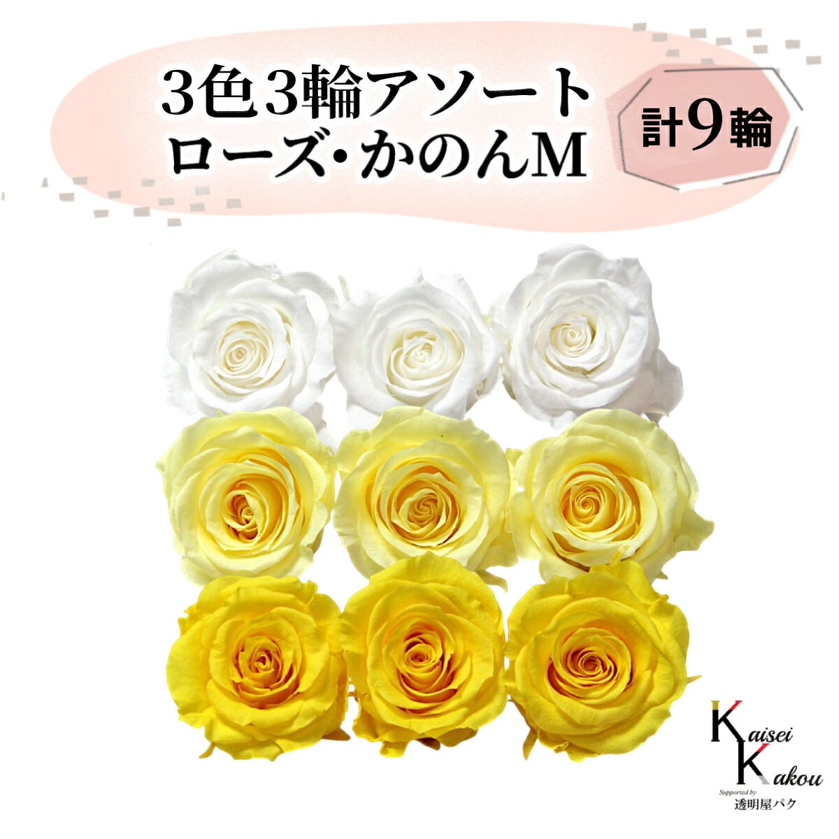 大地農園 「ローズかのんM 3色×3輪アソート 計9輪」 「ピュアホワイト モーニングイエロー ミモザイエロー」 プリザーブドフラワー バラ プリザ 花材 ハーバリウム おしゃれ かわいい プレゼント 贈り物 オオチノウエン
