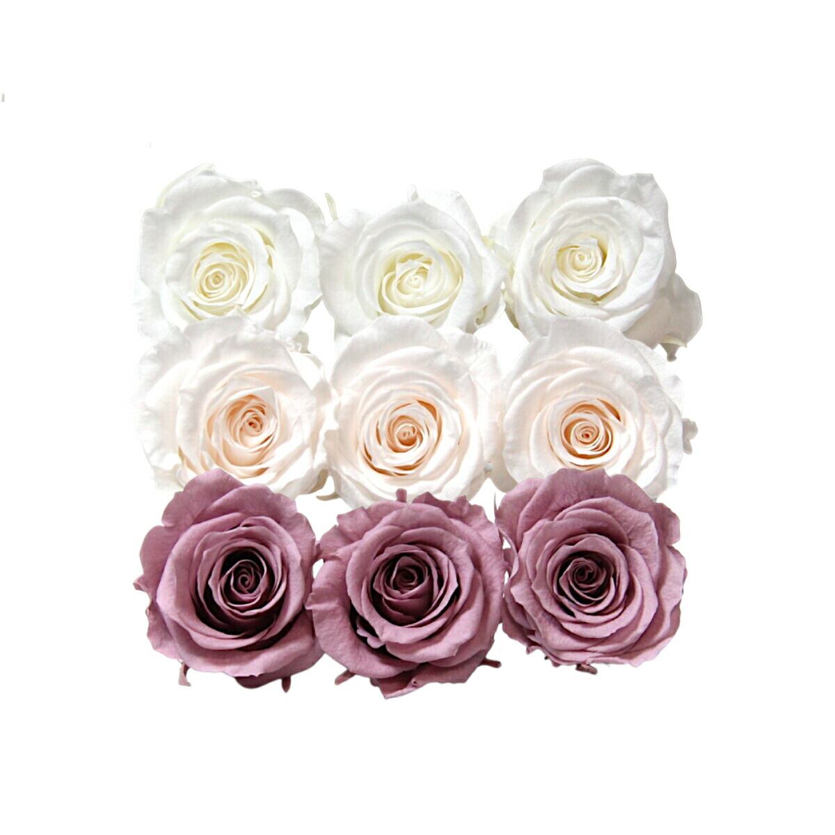 大地農園 「ローズかのんM 3色×3輪アソート 計9輪」 「ピュアホワイト ホワイトシャンパン グレイッシュパープル」 プリザーブドフラワー バラ プリザ 花材 ハーバリウム おしゃれ かわいい プレゼント 贈り物 オオチノウエン