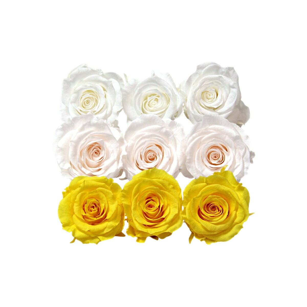 大地農園 「ローズかのんM 3色×3輪アソート 計9輪」 「ピュアホワイト ホワイトシャンパン ミモザイエロー」 プリザーブドフラワー バラ プリザ 花材 ハーバリウム おしゃれ かわいい プレゼント 贈り物 オオチノウエン