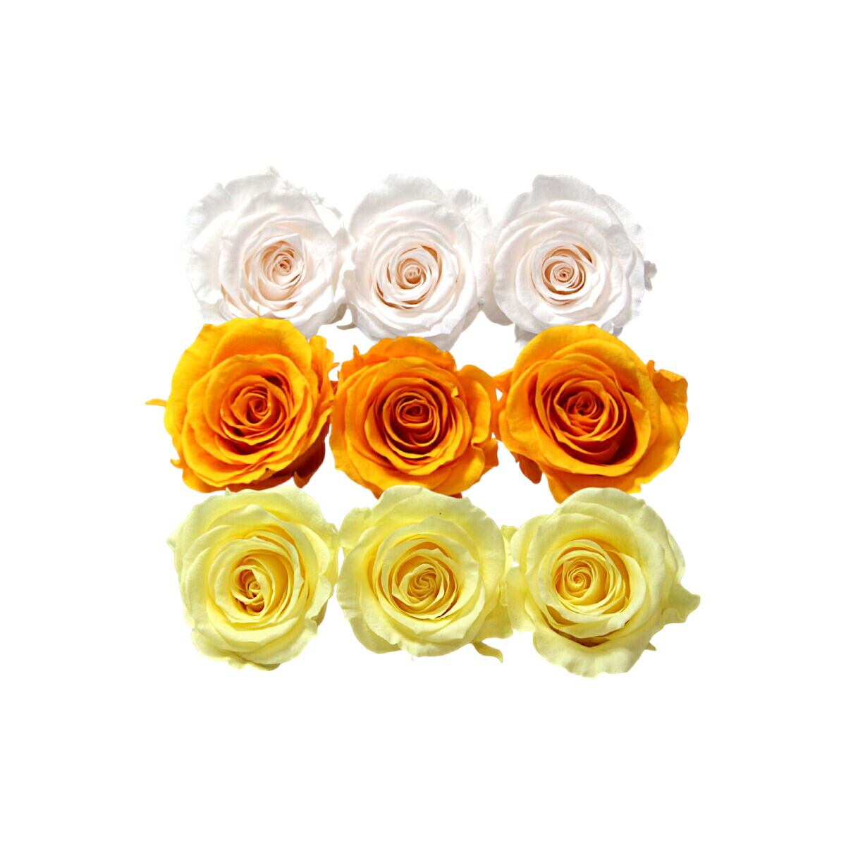 大地農園 「ローズかのんM 3色×3輪アソート 計9輪」 「ホワイトシャンパン フルーティオレンジ モーニングイエロー」 プリザーブドフラワー バラ プリザ 花材 ハーバリウム おしゃれ かわいい プレゼント 贈り物 オオチノウエン