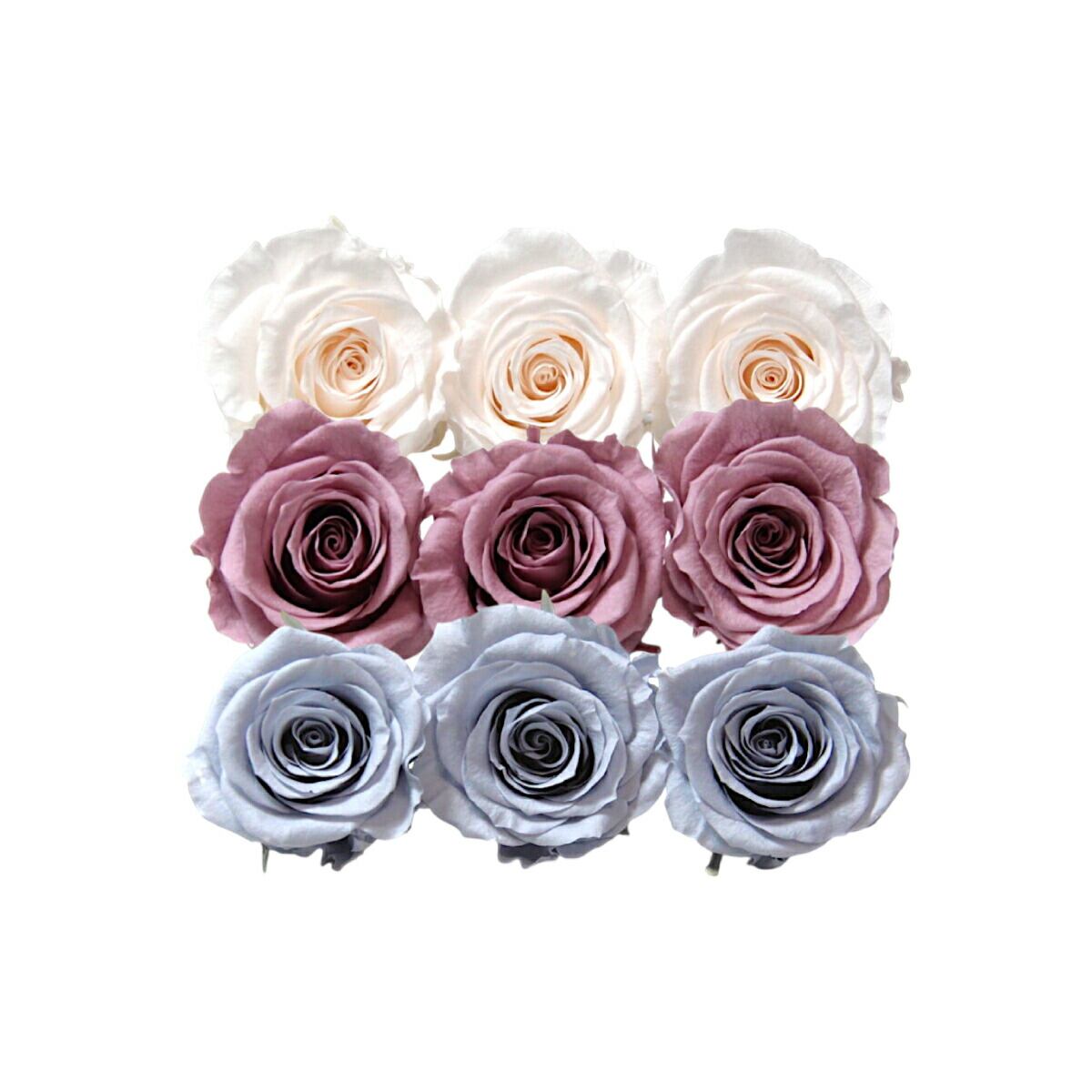 大地農園 「ローズかのんM 3色×3輪アソート 計9輪」 「ホワイトシャンパン グレイッシュパープル ダスティーブルー」 プリザーブドフラワー バラ プリザ 花材 ハーバリウム おしゃれ かわいい プレゼント 贈り物 オオチノウエン