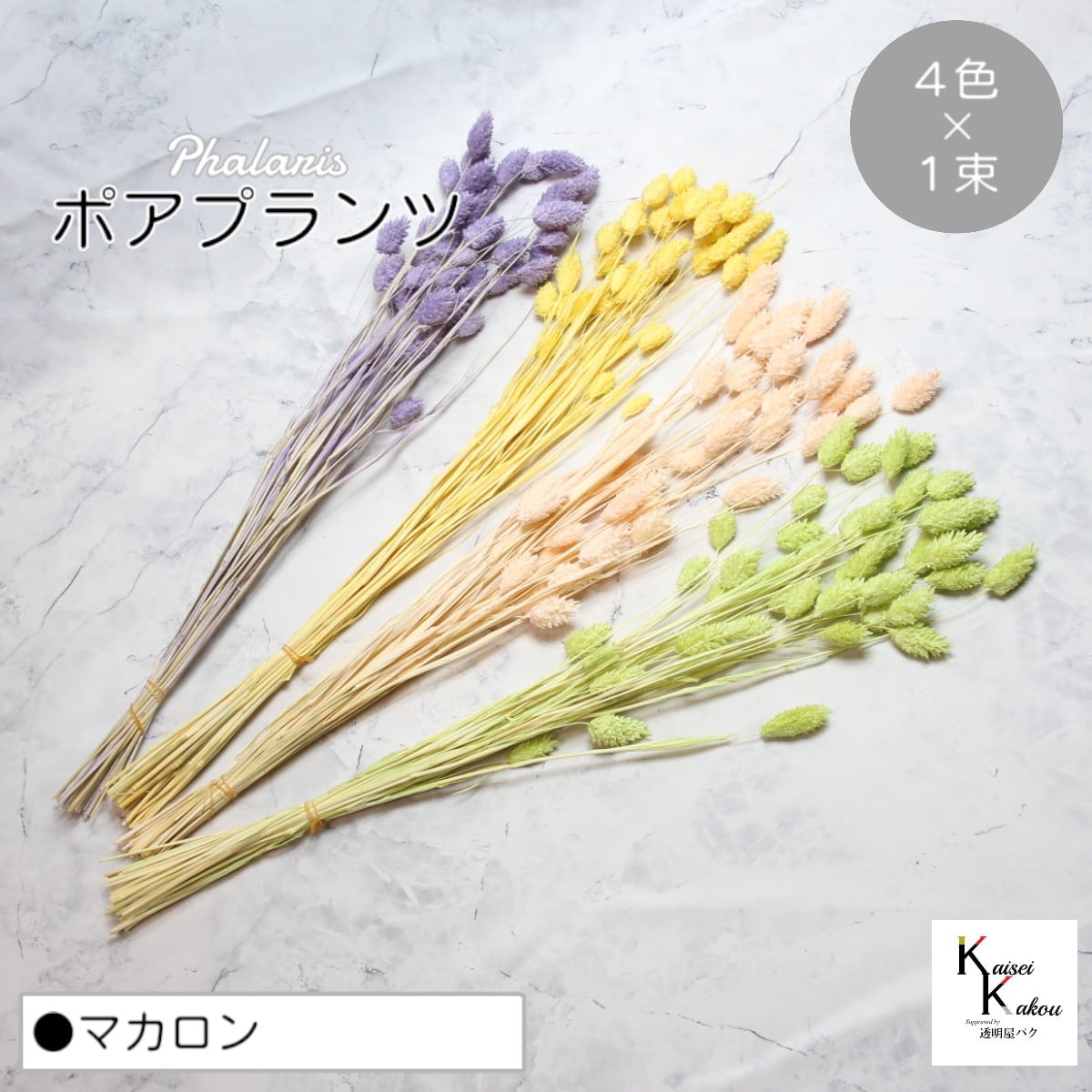大地農園!プリザーブドフラワー 「ポアプランツ マカロン (エンジェルパープル、パステルイエロー、ベビーピンク、マスカットグリーン) 1束ずつ4色」プリザ 花材 ハーバリウム おしゃれ かわいい プレゼント 贈り物 オオチノウエン 自然からの贈り物。大地農園プリザーブドフラワー! ギザギザとした猫じゃらしのような美しい花穂を持つ「ポアプランツ」の花言葉は豊かな実り。そのまま花瓶に活けたり、他のドライフラワーと一緒にブーケにまとめて楽しむことが出来ます内容量:4束(1束×4色)取扱いの注意プリザーブドフラワーは湿気をとても嫌います。湿度の高い場所では枝や茎の切り口や表面から保存液や染料が染み出すことがあり、衣服などを汚す恐れがあります。ご使用の際には充分ご注意ください。※なるべくふんわりと梱包いたしますが、配送による破損、潰れ、ほころびなどが生じることがございます。ご心配な方は宅配便をご指定下さい。※配送の都合上、商品を箱に直接梱包することもございます。※高温多湿の場所では染料が切り口や表面からもれることがありますので、ご注意ください。※天然素材を使用している為、商品により色、サイズなど多少の違いが生じる場合がございます。※パッケージデザイン等が予告なく変更される場合もあります。※商品廃番・メーカー欠品など諸事情によりお届けできない場合がございます。※上記内容におけます返品交換は承れませんので、あらかじめご了承ください。 5