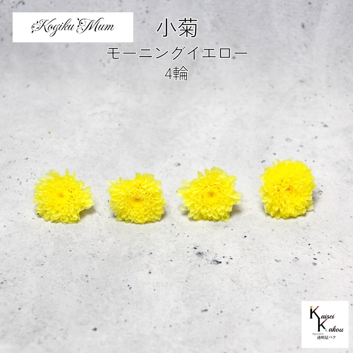 大地農園「小菊 モーニングイエロー 4輪」プリザーブドフラワー プリザ ハーバリウム 小花 ドライフラワー ハーバリウム アロマワックスバー 自然からの贈り物。大地農園プリザーブドフラワー! 手のひらに収まるミニサイズの小菊暮らしに馴染む優しい色合いの仏花だけではなくかわいいお正月アレンジにもお使いいただけます。人気の菊にふんわりと可愛い色合いを加えました。※加工の都合上多少軸に型が付いているものがあります。お部屋にお花を飾りたいけど生花は管理が大変そう・・・」という方や「インテリアとしてお花を取り入れたい」という方に。リース、アレンジ、ワックスサシェなどに...便利に使えます。取扱いの注意プリザーブドフラワーは湿気をとても嫌います。湿度の高い場所では枝や茎の切り口や表面から保存液や染料が染み出すことがあり、衣服などを汚す恐れがあります。ご使用の際には充分ご注意ください。※なるべくふんわりと梱包いたしますが、配送による破損、潰れ、ほころびなどが生じることがございます。ご心配な方は宅配便をご指定下さい。※配送の都合上、商品を箱に直接梱包することもございます。※配送の都合上、使えない根元の部分はカットする場合があります。重量はカット前の重量となります。※高温多湿の場所では染料が切り口や表面からもれることがありますので、ご注意ください。※天然素材を使用している為、商品により色、サイズなど多少の違いが生じる場合がございます。※パッケージデザイン等が予告なく変更される場合もあります。※商品廃番・メーカー欠品など諸事情によりお届けできない場合がございます。※上記内容におけます返品交換は承れませんので、あらかじめご了承ください。 5
