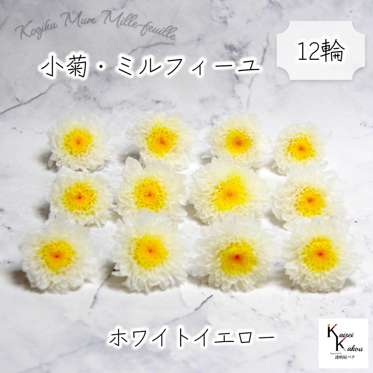大地農園「小菊ミルフィーユ ホワイトイエロー 12輪」プリザーブドフラワー プリザ ハーバリウム 小花 ドライフラワー ハーバリウム アロマワックスバー 自然からの贈り物。大地農園プリザーブドフラワー! 手のひらに収まるミニサイズの小菊暮らしに馴染む優しい色合いの仏花だけではなくかわいいお正月アレンジにもお使いいただけます。人気の菊にふんわりと可愛い色合いを加えました。※加工の都合上多少軸に型が付いているものがあります。お部屋にお花を飾りたいけど生花は管理が大変そう・・・」という方や「インテリアとしてお花を取り入れたい」という方に。リース、アレンジ、ワックスサシェなどに...便利に使えます。取扱いの注意プリザーブドフラワーは湿気をとても嫌います。湿度の高い場所では枝や茎の切り口や表面から保存液や染料が染み出すことがあり、衣服などを汚す恐れがあります。ご使用の際には充分ご注意ください。※なるべくふんわりと梱包いたしますが、配送による破損、潰れ、ほころびなどが生じることがございます。ご心配な方は宅配便をご指定下さい。※配送の都合上、商品を箱に直接梱包することもございます。※配送の都合上、使えない根元の部分はカットする場合があります。重量はカット前の重量となります。※高温多湿の場所では染料が切り口や表面からもれることがありますので、ご注意ください。※天然素材を使用している為、商品により色、サイズなど多少の違いが生じる場合がございます。※パッケージデザイン等が予告なく変更される場合もあります。※商品廃番・メーカー欠品など諸事情によりお届けできない場合がございます。※上記内容におけます返品交換は承れませんので、あらかじめご了承ください。 5