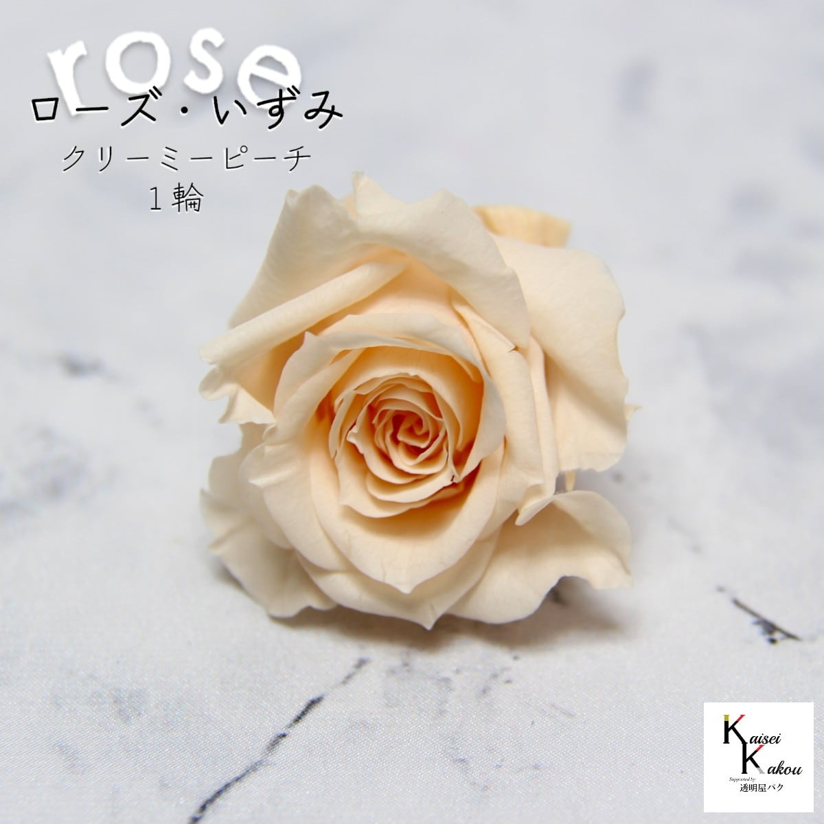 大地農園!プリザーブドフラワー 「ローズいずみ 1輪 クリーミーピーチ」プリザ 花材 ハーバリウム おしゃれ かわいい プレゼント 贈り物 オオチノウエン バラ 薔薇 ローズ rose 自然からの贈り物。大地農園プリザーブドフラワー! 花径:3.5~4.5cmφ花丈:約3~3.5cm使いやすいオーソドックスな花形で人気No.1のローズです。メインの花材としても、添花としても使える程よいサイズで手頃な価格も魅力です。「お部屋にお花を飾りたいけど生花は管理が大変そう・・・」という方や「インテリアとしてお花を取り入れたい」という方に。大切な人に贈り物をする際にもよく選ばれています。リース、アレンジ、ワックスサシェや髪飾りなどに...便利に使えます。取扱いの注意プリザーブドフラワーは湿気をとても嫌います。湿度の高い場所では枝や茎の切り口や表面から保存液や染料が染み出すことがあり、衣服などを汚す恐れがあります。ご使用の際には充分ご注意ください。※なるべくふんわりと梱包いたしますが、配送による破損、潰れ、ほころびなどが生じることがございます。ご心配な方は宅配便をご指定下さい。※配送の都合上、商品を箱に直接梱包することもございます。※配送の都合上、使えない根元の部分はカットする場合があります。重量はカット前の重量となります。※高温多湿の場所では染料が切り口や表面からもれることがありますので、ご注意ください。※天然素材を使用している為、商品により色、サイズなど多少の違いが生じる場合がございます。※パッケージデザイン等が予告なく変更される場合もあります。※商品廃番・メーカー欠品など諸事情によりお届けできない場合がございます。※上記内容におけます返品交換は承れませんので、あらかじめご了承ください。 5