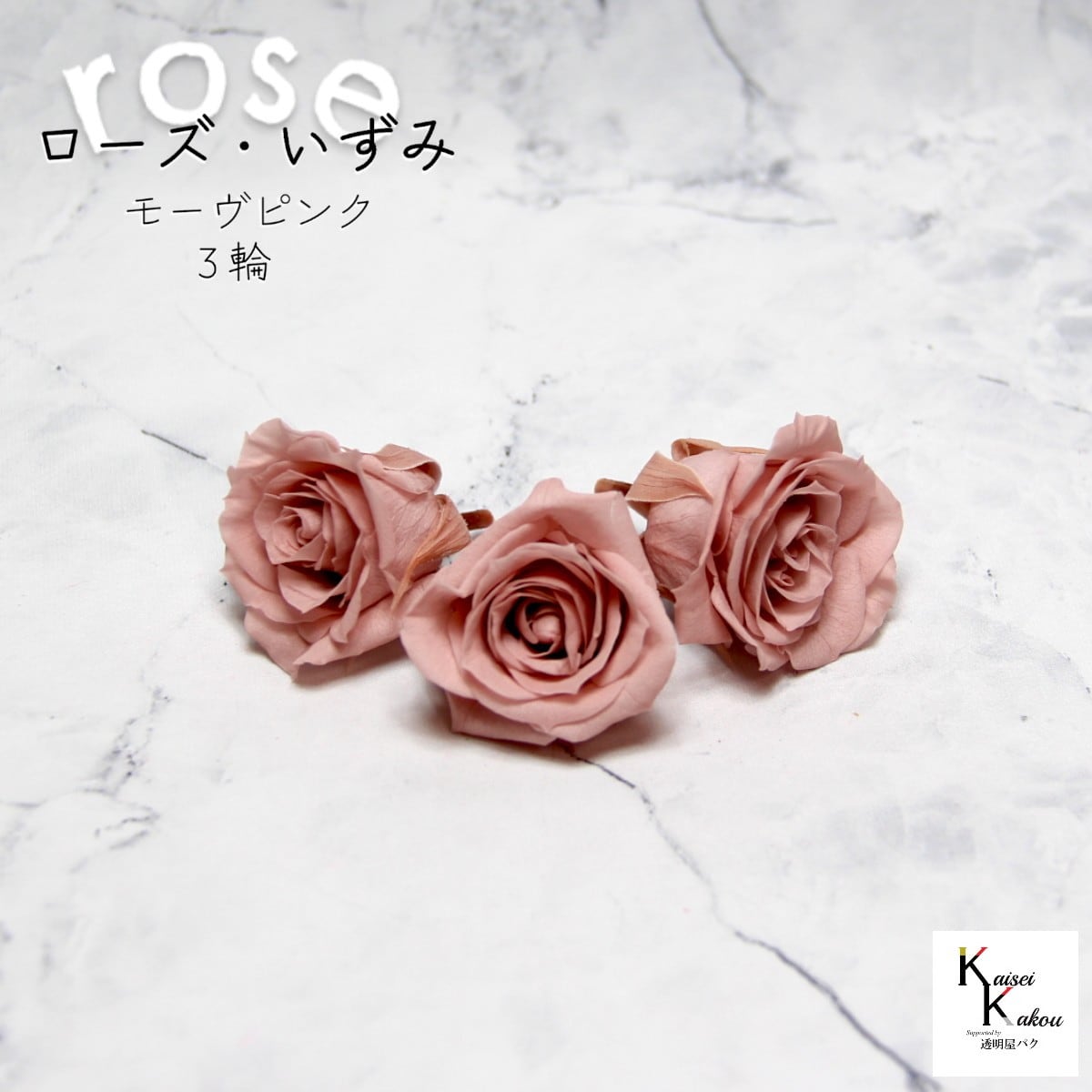 大地農園!プリザーブドフラワー 「ローズいずみ 3輪 モーヴピンク」プリザ 花材 ハーバリウム おしゃれ かわいい プレゼント 贈り物 オオチノウエン バラ 薔薇 ローズ rose 自然からの贈り物。大地農園プリザーブドフラワー! 花径:3.5~4.5cmφ花丈:約3~3.5cm使いやすいオーソドックスな花形で人気No.1のローズです。メインの花材としても、添花としても使える程よいサイズで手頃な価格も魅力です。「お部屋にお花を飾りたいけど生花は管理が大変そう・・・」という方や「インテリアとしてお花を取り入れたい」という方に。大切な人に贈り物をする際にもよく選ばれています。リース、アレンジ、ワックスサシェや髪飾りなどに...便利に使えます。取扱いの注意プリザーブドフラワーは湿気をとても嫌います。湿度の高い場所では枝や茎の切り口や表面から保存液や染料が染み出すことがあり、衣服などを汚す恐れがあります。ご使用の際には充分ご注意ください。※なるべくふんわりと梱包いたしますが、配送による破損、潰れ、ほころびなどが生じることがございます。ご心配な方は宅配便をご指定下さい。※配送の都合上、商品を箱に直接梱包することもございます。※配送の都合上、使えない根元の部分はカットする場合があります。重量はカット前の重量となります。※高温多湿の場所では染料が切り口や表面からもれることがありますので、ご注意ください。※天然素材を使用している為、商品により色、サイズなど多少の違いが生じる場合がございます。※パッケージデザイン等が予告なく変更される場合もあります。※商品廃番・メーカー欠品など諸事情によりお届けできない場合がございます。※上記内容におけます返品交換は承れませんので、あらかじめご了承ください。 5