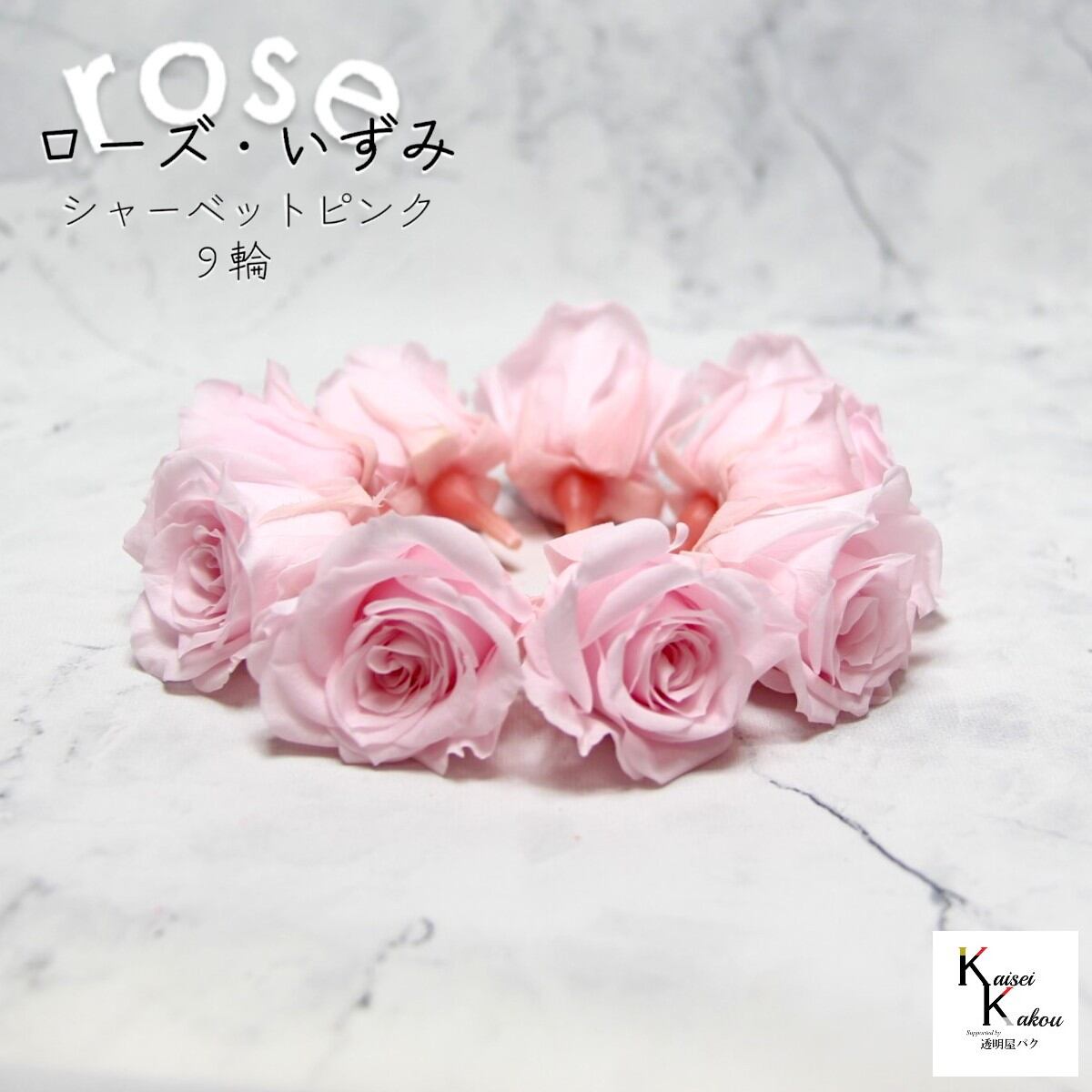 大地農園!プリザーブドフラワー 「ローズいずみ 9輪 シャーベットピンク」プリザ 花材 ハーバリウム おしゃれ かわいい プレゼント 贈り物 オオチノウエン バラ 薔薇 ローズ rose 自然からの贈り物。大地農園プリザーブドフラワー! 花径:3.5~4.5cmφ花丈:約3~3.5cm使いやすいオーソドックスな花形で人気No.1のローズです。メインの花材としても、添花としても使える程よいサイズで手頃な価格も魅力です。「お部屋にお花を飾りたいけど生花は管理が大変そう・・・」という方や「インテリアとしてお花を取り入れたい」という方に。大切な人に贈り物をする際にもよく選ばれています。リース、アレンジ、ワックスサシェや髪飾りなどに...便利に使えます。取扱いの注意プリザーブドフラワーは湿気をとても嫌います。湿度の高い場所では枝や茎の切り口や表面から保存液や染料が染み出すことがあり、衣服などを汚す恐れがあります。ご使用の際には充分ご注意ください。※なるべくふんわりと梱包いたしますが、配送による破損、潰れ、ほころびなどが生じることがございます。ご心配な方は宅配便をご指定下さい。※配送の都合上、商品を箱に直接梱包することもございます。※配送の都合上、使えない根元の部分はカットする場合があります。重量はカット前の重量となります。※高温多湿の場所では染料が切り口や表面からもれることがありますので、ご注意ください。※天然素材を使用している為、商品により色、サイズなど多少の違いが生じる場合がございます。※パッケージデザイン等が予告なく変更される場合もあります。※商品廃番・メーカー欠品など諸事情によりお届けできない場合がございます。※上記内容におけます返品交換は承れませんので、あらかじめご了承ください。 5