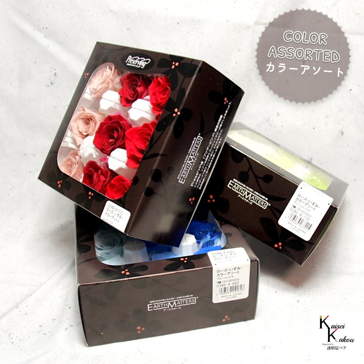大地農園!プリザーブドフラワー 「ローズいずみ カラーアソート ピンクミックス 2輪ずつ6輪」 「シャーベットピンク プリンセスピンク フランボワーズ 2輪ずつ6輪」 プリザ 花材 ハーバリウム オオチノウエン バラ 薔薇 ローズ rose 自然からの贈り物。大地農園プリザーブドフラワー! 花径:3.5~4.5cmφ花丈:約3~3.5cmローズいずみ3色のカラーアソート!使いやすいオーソドックスな花形で人気No.1のローズです。メインの花材としても、添花としても使える程よいサイズで手頃な価格も魅力です。「お部屋にお花を飾りたいけど生花は管理が大変そう・・・」という方や「インテリアとしてお花を取り入れたい」という方に。大切な人に贈り物をする際にもよく選ばれています。リース、アレンジ、ワックスサシェや髪飾りなどに...便利に使えます。取扱いの注意プリザーブドフラワーは湿気をとても嫌います。湿度の高い場所では枝や茎の切り口や表面から保存液や染料が染み出すことがあり、衣服などを汚す恐れがあります。ご使用の際には充分ご注意ください。※なるべくふんわりと梱包いたしますが、配送による破損、潰れ、ほころびなどが生じることがございます。ご心配な方は宅配便をご指定下さい。※配送の都合上、商品を箱に直接梱包することもございます。※配送の都合上、使えない根元の部分はカットする場合があります。重量はカット前の重量となります。※高温多湿の場所では染料が切り口や表面からもれることがありますので、ご注意ください。※天然素材を使用している為、商品により色、サイズなど多少の違いが生じる場合がございます。※パッケージデザイン等が予告なく変更される場合もあります。(写真の箱と異なる場合がございます)※商品廃番・メーカー欠品など諸事情によりお届けできない場合がございます。※上記内容におけます返品交換は承れませんので、あらかじめご了承ください。 5