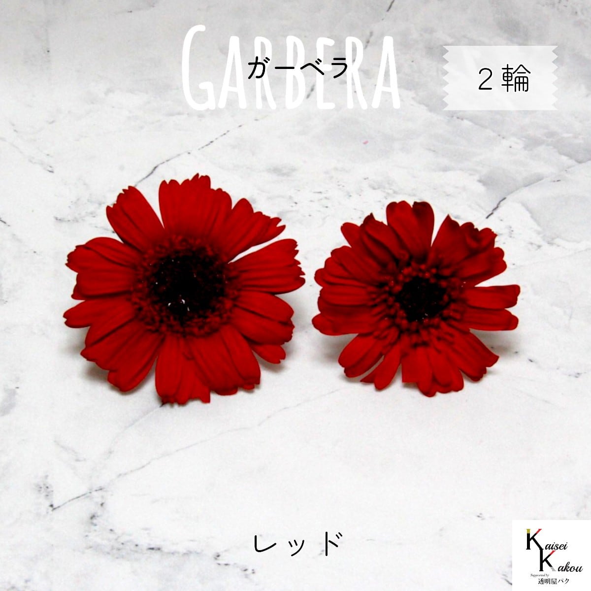 大地農園!プリザーブドフラワー 「ガーベラ レッド 2輪」プリザ 花材 ハーバリウム おしゃれ かわいい プレゼント 贈り物 オオチノウエン 自然からの贈り物。大地農園プリザーブドフラワー! 生花のような美しさがそのままな、色鮮やかなガーベラです。1輪でも存在感があり、フラワーアレンジメント、ハーバリウムに、インテリアとして飾っていただくのもおすすめです。花径:約5.5~8cmφ取扱いの注意プリザーブドフラワーは湿気をとても嫌います。湿度の高い場所では枝や茎の切り口や表面から保存液や染料が染み出すことがあり、衣服などを汚す恐れがあります。ご使用の際には充分ご注意ください。※なるべくふんわりと梱包いたしますが、配送による破損、潰れ、ほころびなどが生じることがございます。ご心配な方は宅配便をご指定下さい。※配送の都合上、商品を箱に直接梱包することもございます。※高温多湿の場所では染料が切り口や表面からもれることがありますので、ご注意ください。※天然素材を使用している為、商品により色、サイズなど多少の違いが生じる場合がございます。※パッケージデザイン等が予告なく変更される場合もあります。※商品廃番・メーカー欠品など諸事情によりお届けできない場合がございます。※上記内容におけます返品交換は承れませんので、あらかじめご了承ください。 5