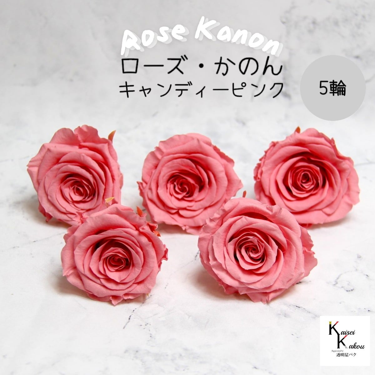 大地農園!プリザーブドフラワー 「ローズかのんL キャンディーピンク 5輪」プリザ 花材 ハーバリウム おしゃれ かわいい プレゼント 贈り物 オオチノウエン