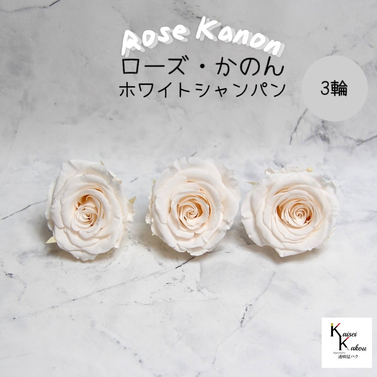 大地農園!プリザーブドフラワー 「ローズかのんL ホワイトシャンパン 3輪」プリザ 花材 ハーバリウム おしゃれ かわいい プレゼント 贈り物 オオチノウエン