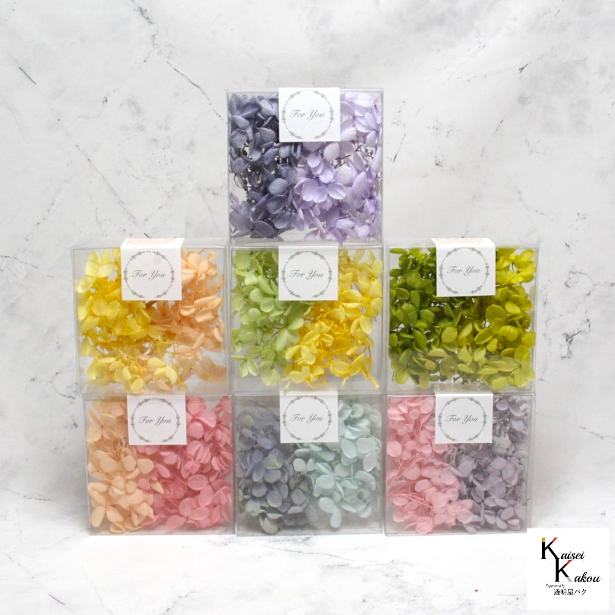 大地農園! プリザーブドフラワー 「ピラミッドアジサイ カラーパレット (ナチュラルピンク、ラベンダー) 3g 1個」 アジサイ プリザ ドライフラワー 花材 装飾 ハーバリウム おしゃれ かわいい プレゼント 贈り物 オオチノウエン 自然からの贈り物。大地農園プリザーブドフラワー! ハーバリウムやアレンジに人気の色鮮やかなアジサイをミニサイズのケースに...!フォームを隠したり、ほかの花材の隙間に入れたりして、便利に使える定番のプリザーブドフラワーです。2色入っているので便利にご使用いただけます。ケース入りなのでお好みのカラーを集めてそのまま飾るのもおすすめです。ピラミッドアジサイのプリザーブドフラワー2色が合わせて約3g入り。・他の色もご用意ございます。※なるべくふんわりと梱包いたしますが、配送による破損、潰れ、ほころびなどが生じることがございます。ご心配な方は宅配便をご指定下さい。※配送の都合上、商品を箱に直接梱包することもございます。※高温多湿の場所では染料が切り口や表面からもれることがありますので、ご注意ください。※天然素材を使用している為、商品により色、サイズなど多少の違いが生じる場合がございます。※配送の都合上、使えない根元の部分はカットする場合があります。重量はカット前の重量となります。※上記内容におけます返品交換は承れませんので、あらかじめご了承ください。※パッケージデザイン等が予告なく変更される場合もあります。※商品廃番・メーカー欠品など諸事情によりお届けできない場合がございます。取扱いの注意プリザーブドフラワーは湿気をとても嫌います。湿度の高い場所では枝や茎の切り口や表面から保存液や染料が染み出すことがあり、衣服などを汚す恐れがあります。ご使用の際には充分ご注意ください。 5