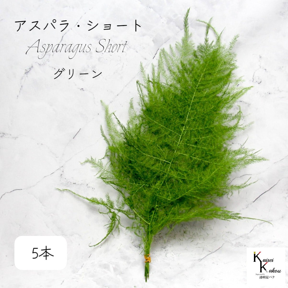 大地農園!プリザーブドフラワー「アスパラ・ショート グリーン 5本」プリザ 花材 ハーバリウム おしゃれ ナチュラル グリーン かわいい プレゼント 贈り物 オオチノウエン 自然からの贈り物。大地農園プリザーブドフラワー! 繊細でやさしい葉の特徴を最大限生かし、使いやすくしっかりとした質感にしました。アレンジを優しい印象に仕上げます。リース、ワックスサシェや髪飾りなど…様々なスタイルやアレンジで使うことができます。花丈:約25〜30cm※なるべくふんわりと梱包いたしますが、配送による破損、潰れ、ほころびなどが生じることがございます。ご心配な方は宅配便をご指定下さい。※5本分、3本分、1本分の商品がございます。ご注意ください。※配送の都合上、商品を箱に直接梱包することもございます。※高温多湿の場所では染料が切り口や表面からもれることがありますので、ご注意ください。※天然素材を使用している為、商品により色、サイズなど多少の違いが生じる場合がございます。※配送の都合上、使えない根元の部分はカットする場合があります。重量はカット前の重量となります。※上記内容におけます返品交換は承れませんので、あらかじめご了承ください。※パッケージデザイン等が予告なく変更される場合もあります。※商品廃番・メーカー欠品など諸事情によりお届けできない場合がございます。取扱いの注意プリザーブドフラワーは湿気をとても嫌います。湿度の高い場所では枝や茎の切り口や表面から保存液や染料が染み出すことがあり、衣服などを汚す恐れがあります。ご使用の際には充分ご注意ください。 5