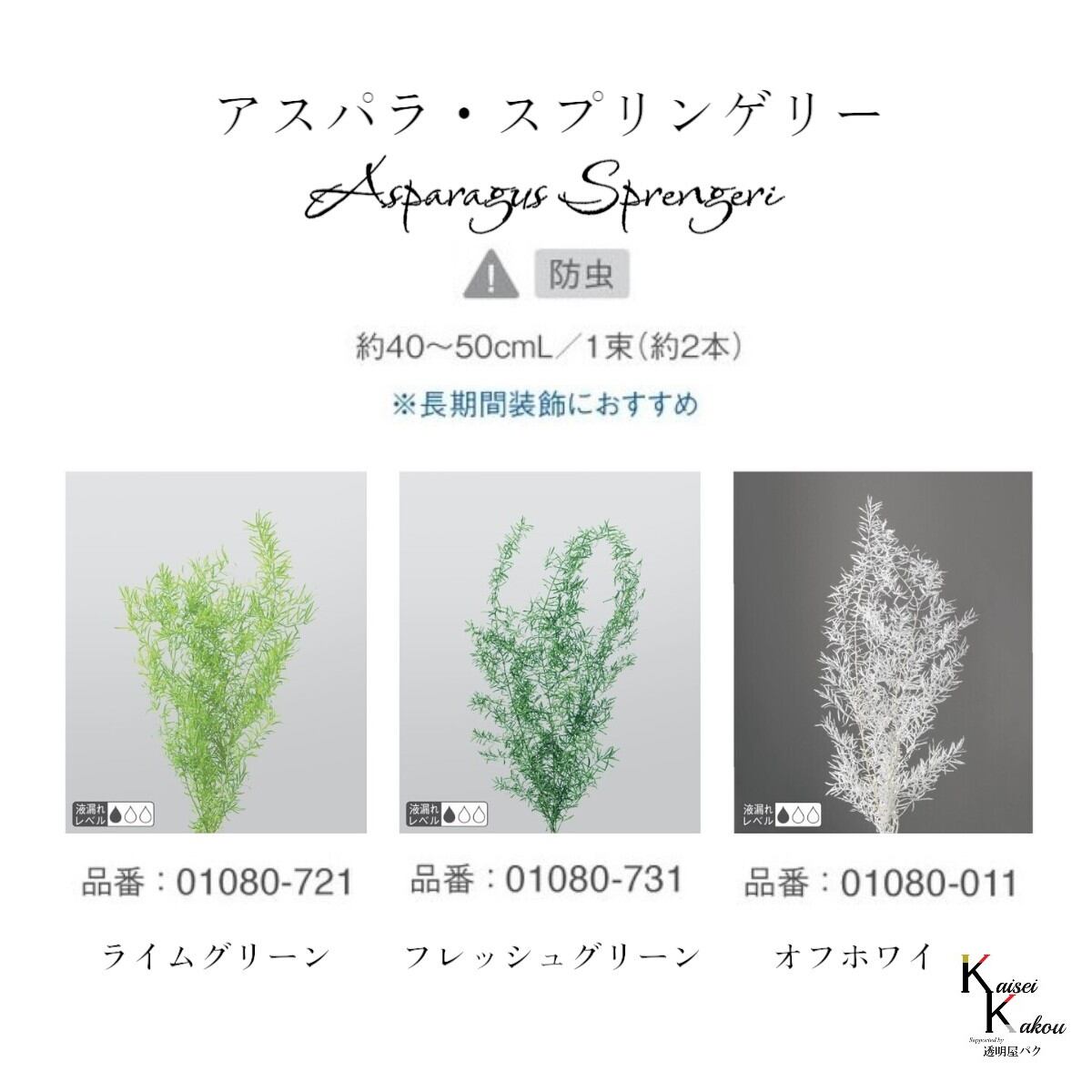 大地農園!プリザーブドフラワー「アスパラ・スプリンゲリー フレッシュグリーン 1本」プリザ 花材 ハーバリウム おしゃれ ナチュラル グリーン かわいい プレゼント 贈り物 オオチノウエン 自然からの贈り物。大地農園プリザーブドフラワー! 野菜のアスパラガスと同じ仲間の植物ですが、食用ではなく涼しげな葉と優雅に弧を描くような姿を楽しむことができます。リース、ワックスサシェや髪飾りなど…様々なスタイルやアレンジで使うことができます。花丈:約40〜50cm※なるべくふんわりと梱包いたしますが、配送による破損、潰れ、ほころびなどが生じることがございます。ご心配な方は宅配便をご指定下さい。※2本分、1本分の商品がございます。ご注意ください。※配送の都合上、商品を箱に直接梱包することもございます。※高温多湿の場所では染料が切り口や表面からもれることがありますので、ご注意ください。※天然素材を使用している為、商品により色、サイズなど多少の違いが生じる場合がございます。※配送の都合上、使えない根元の部分はカットする場合があります。重量はカット前の重量となります。※上記内容におけます返品交換は承れませんので、あらかじめご了承ください。※パッケージデザイン等が予告なく変更される場合もあります。※商品廃番・メーカー欠品など諸事情によりお届けできない場合がございます。取扱いの注意プリザーブドフラワーは湿気をとても嫌います。湿度の高い場所では枝や茎の切り口や表面から保存液や染料が染み出すことがあり、衣服などを汚す恐れがあります。ご使用の際には充分ご注意ください。 5