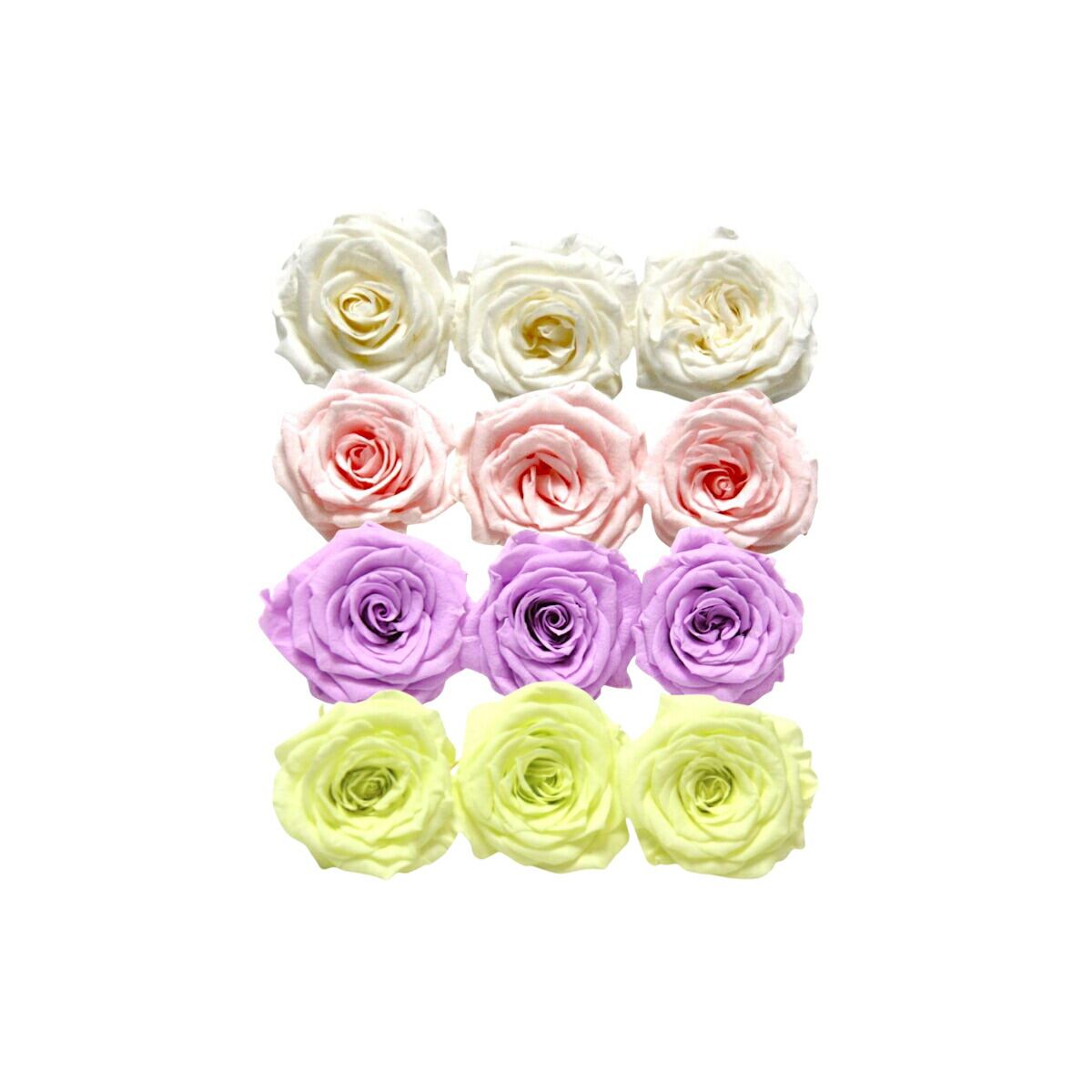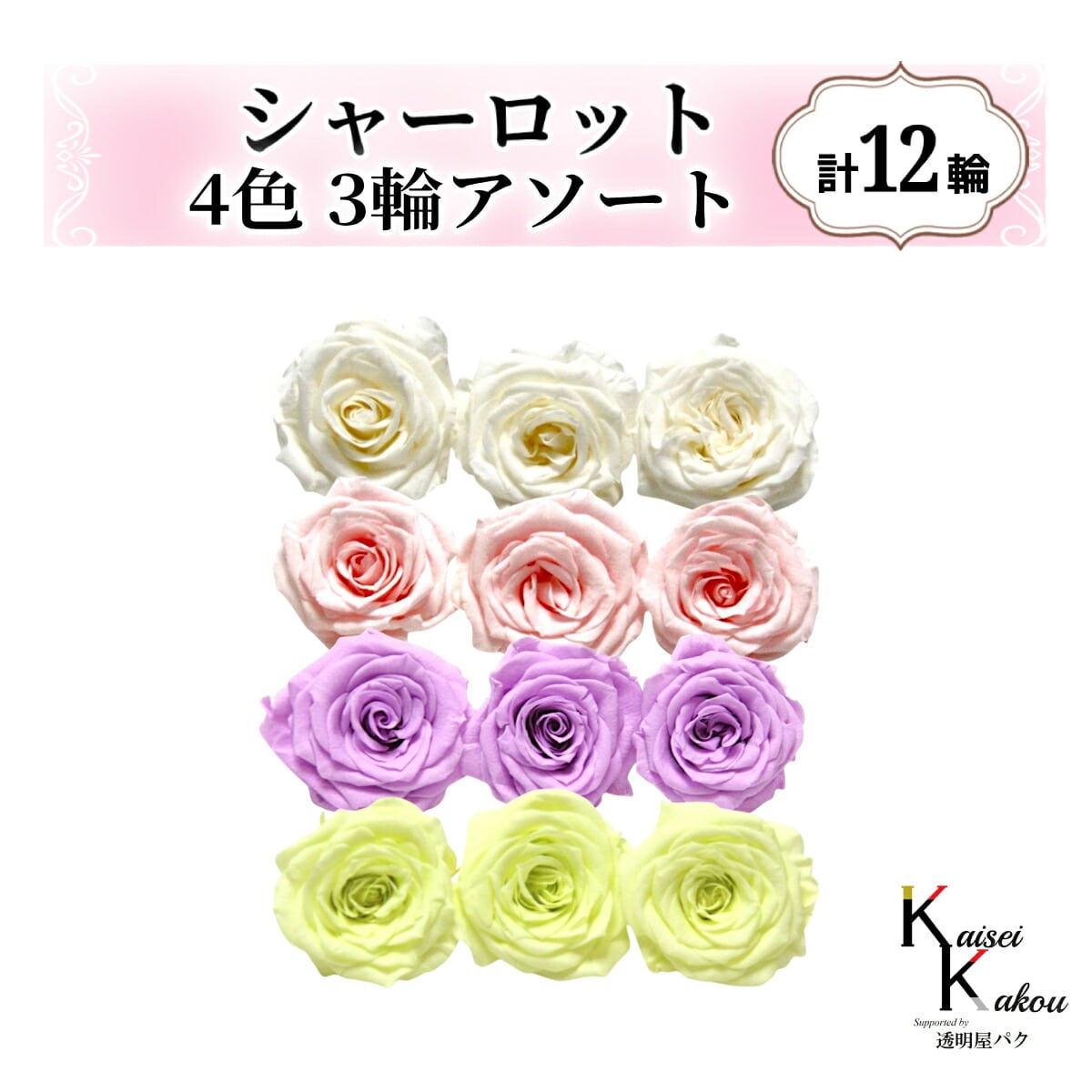 大地農園!プリザーブドフラワー「シャーロット 4色×3輪アソート 計12輪」「アンティックホワイト ブライダルピンク スウィートライラック フレッシュグリーン」プリザ 花材 ハーバリウム おしゃれ ピンク バラ かわいい プレゼント 贈り物 オオチノウエン