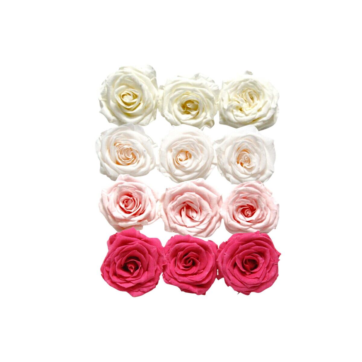 大地農園!プリザーブドフラワー「シャーロット 4色×3輪アソート 計12輪」「アンティックホワイト ホワイトシャンパン ブライダルピンク フランボワーズ」プリザ 花材 ハーバリウム おしゃれ ピンク バラ かわいい プレゼント 贈り物 オオチノウエン