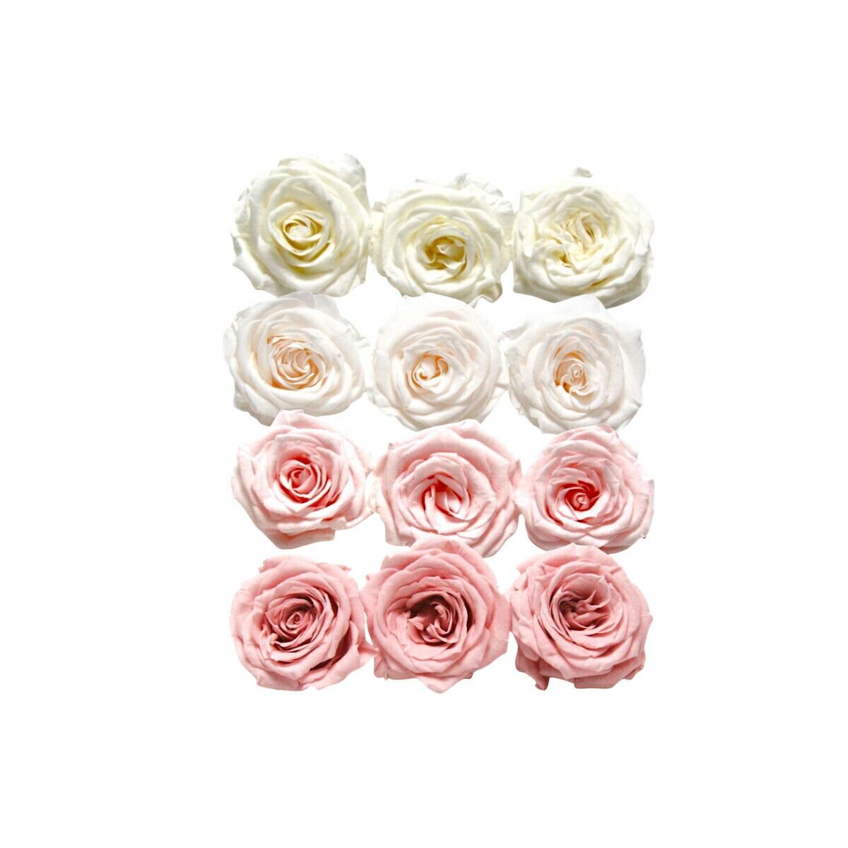 大地農園!プリザーブドフラワー「シャーロット 4色×3輪アソート 計12輪」「アンティックホワイト ホワイトシャンパン ブライダルピンク バニラピンク」プリザ 花材 ハーバリウム おしゃれ ピンク バラ かわいい プレゼント 贈り物 オオチノウエン
