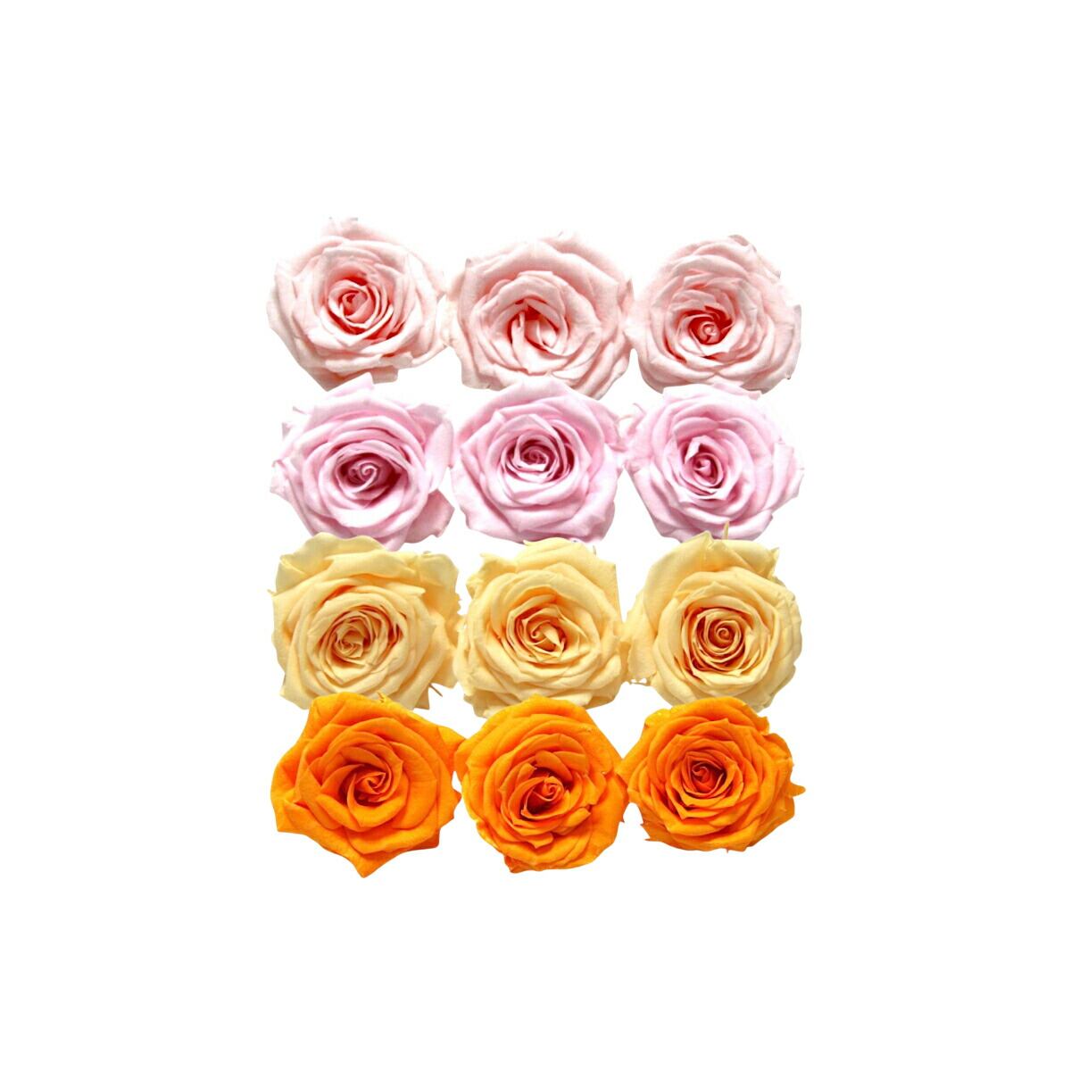 大地農園!プリザーブドフラワー「シャーロット 4色×3輪アソート 計12輪」「ブライダルピンク シャーベットピンク ジュリアオレンジ フルーティオレンジ」プリザ 花材 ハーバリウム おしゃれ ピンク バラ かわいい プレゼント 贈り物 オオチノウエン