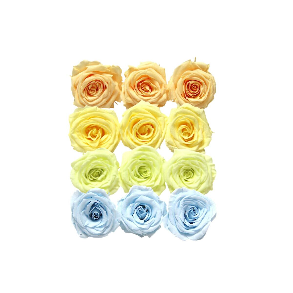 大地農園!プリザーブドフラワー「シャーロット 4色×3輪アソート 計12輪」「ジュリアオレンジ モーニングイエロー フレッシュグリーン ベビーブルー」プリザ 花材 ハーバリウム おしゃれ ピンク バラ かわいい プレゼント 贈り物 オオチノウエン