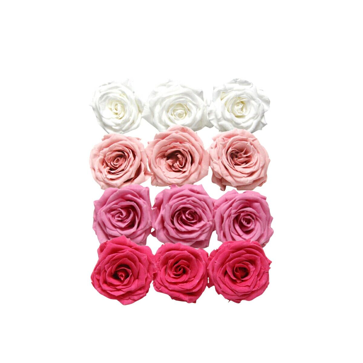 大地農園!プリザーブドフラワー「シャーロット 4色×3輪アソート 計12輪」「ピュアホワイト バニラピンク プリンセスピンク フランボワーズ」プリザ 花材 ハーバリウム おしゃれ ピンク バラ かわいい プレゼント 贈り物 オオチノウエン
