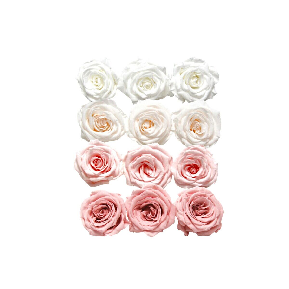 大地農園!プリザーブドフラワー「シャーロット 4色×3輪アソート 計12輪」「ピュアホワイト ホワイトシャンパン ブライダルピンク バニラピンク」プリザ 花材 ハーバリウム おしゃれ ピンク バラ かわいい プレゼント 贈り物 オオチノウエン