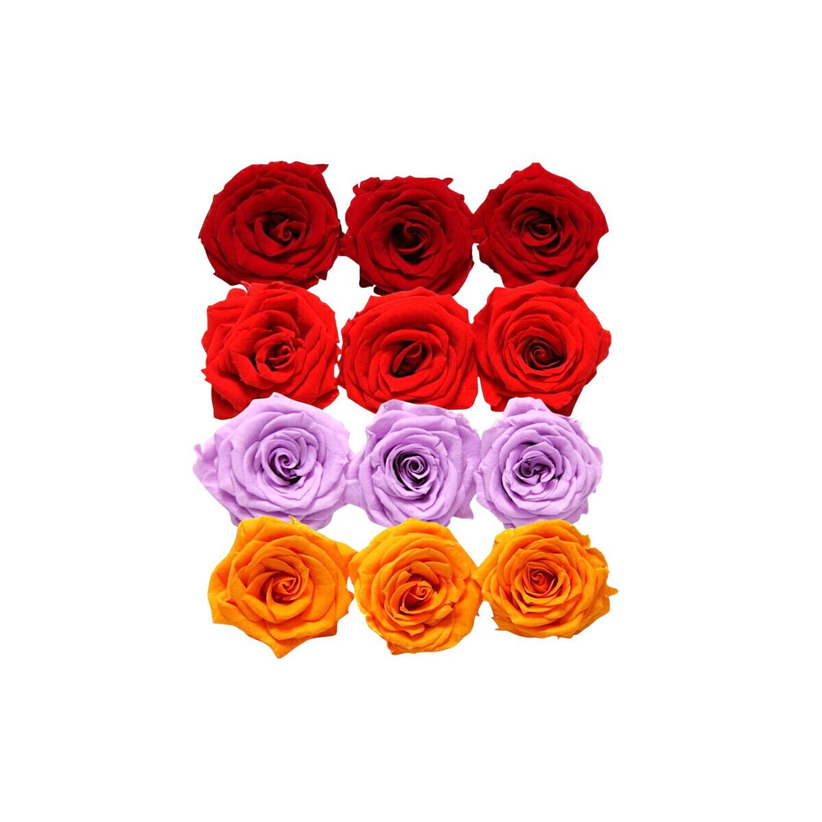 大地農園!プリザーブドフラワー「シャーロット 4色×3輪アソート 計12輪」「クイーンレッド レッド スウィートライラック フルーティオレンジ」プリザ 花材 ハーバリウム おしゃれ ピンク バラ かわいい プレゼント 贈り物 オオチノウエン