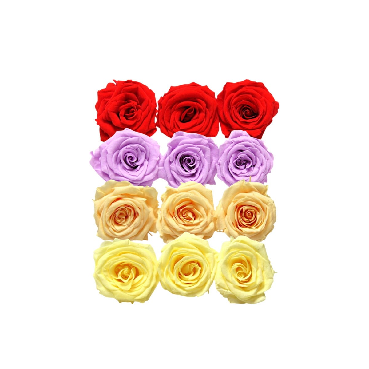 大地農園!プリザーブドフラワー「シャーロット 4色×3輪アソート 計12輪」「レッド スウィートライラック ジュリアオレンジ モーニングイエロー」プリザ 花材 ハーバリウム おしゃれ ピンク バラ かわいい プレゼント 贈り物 オオチノウエン